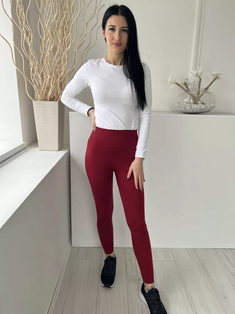 (S) Bordó Oldalt Anyagában Mintás Derékban Varrás Nélküli, Rugalmas Anyagú Nadrág