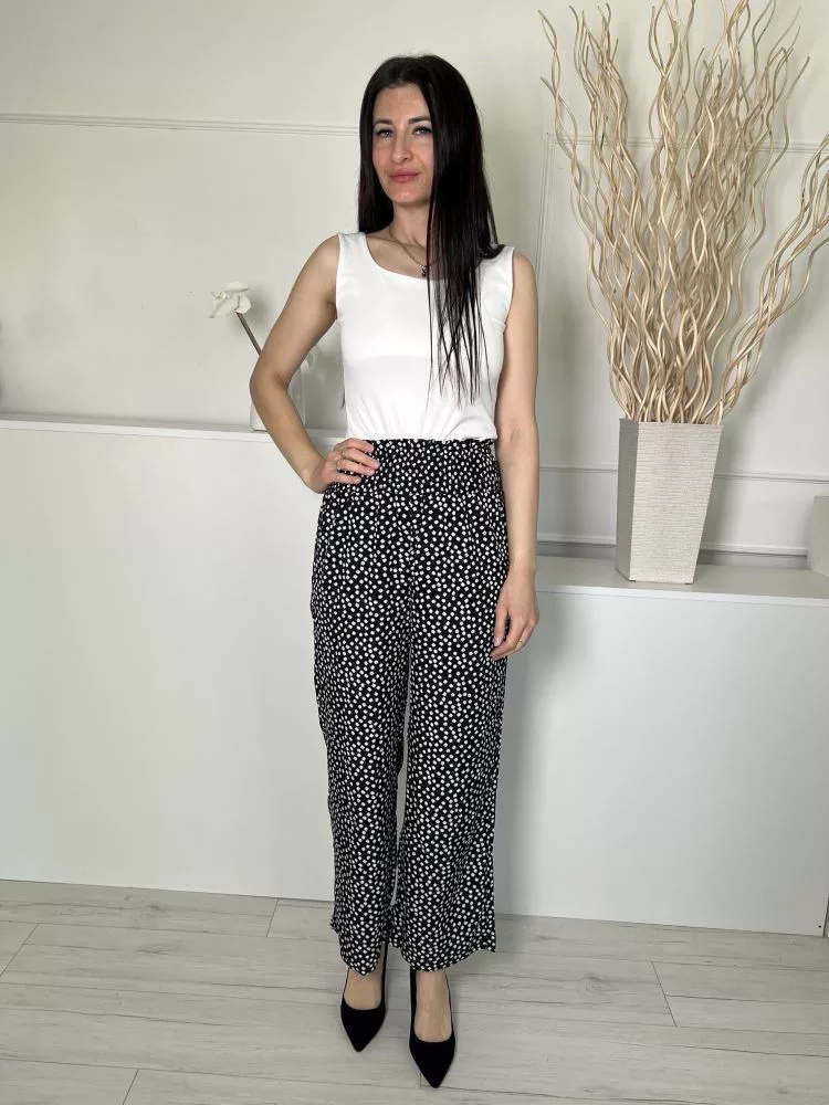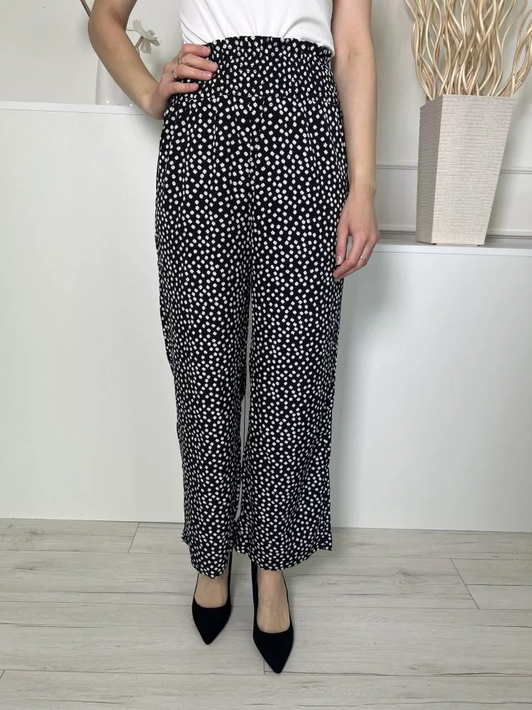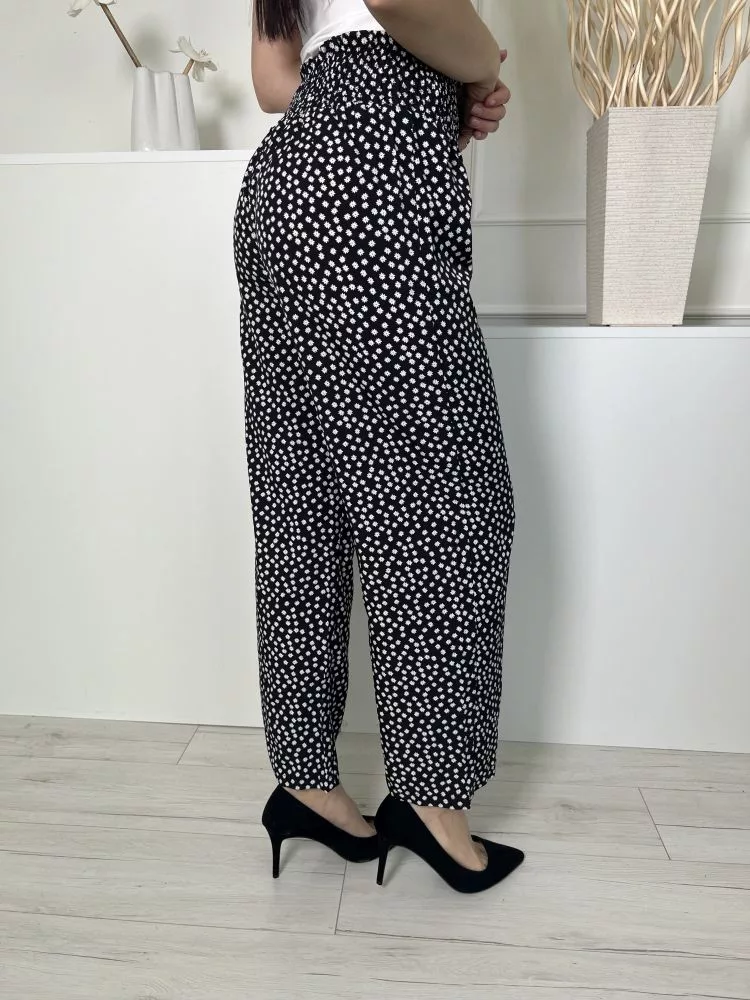 (S) Fekete Derékban Darázsolt Apró Fehér Virágos Nadrág