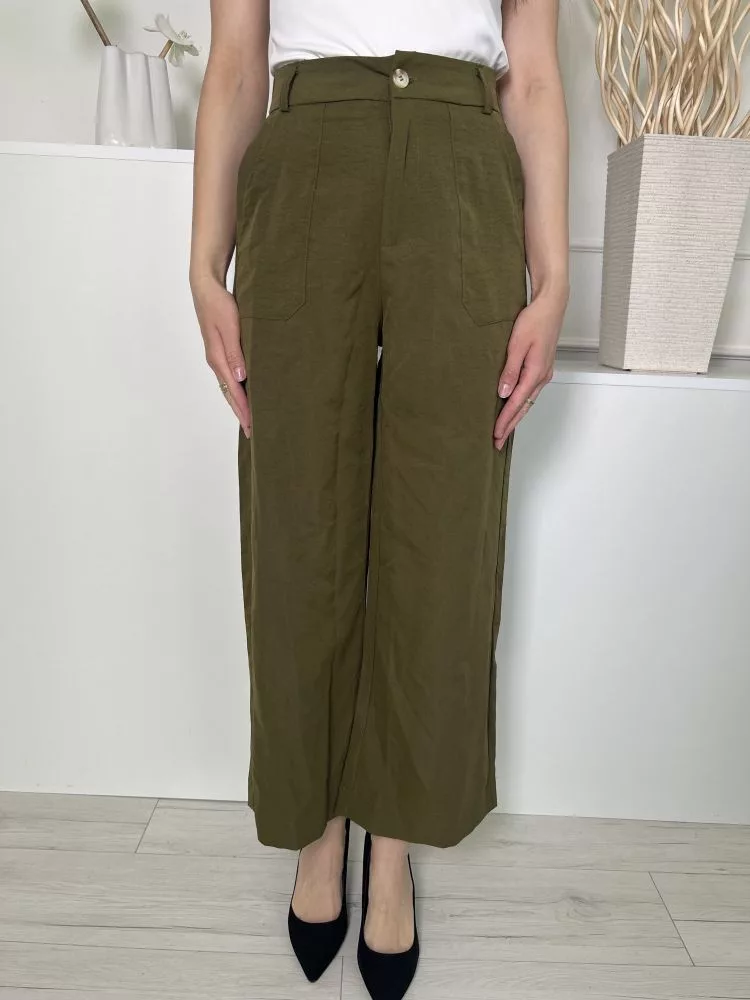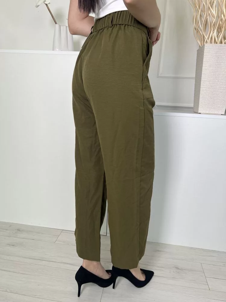 (S) Khaki Elől Gombos, Hátul Gumisderekú Övtartós, Bőfazonú Nadrág