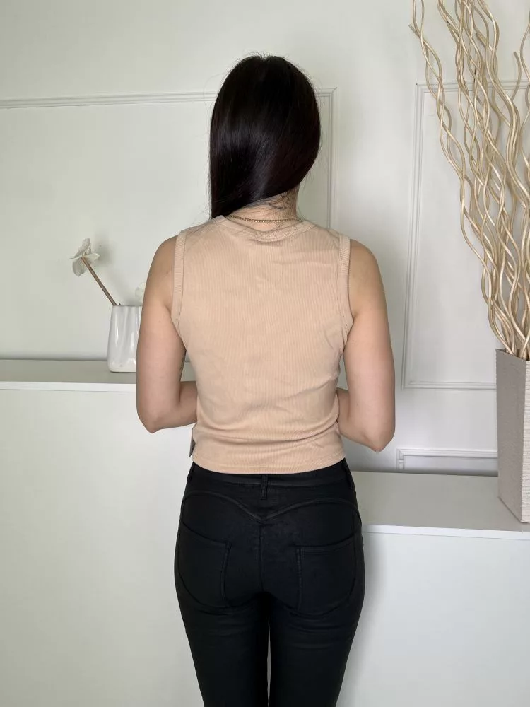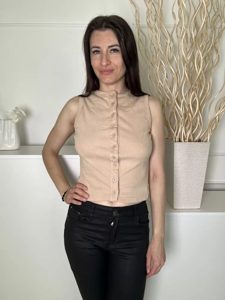 (S) Világosbarna Elől Végig Gombos Anyagában Bordázott Felső