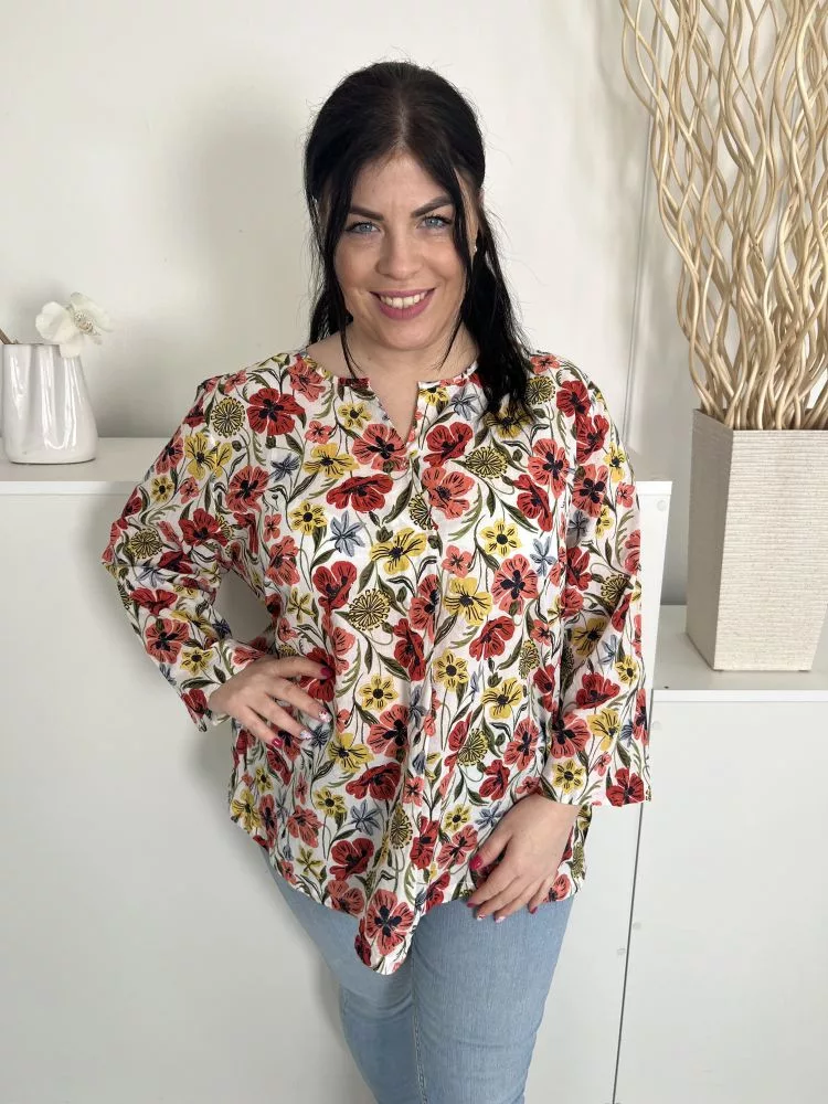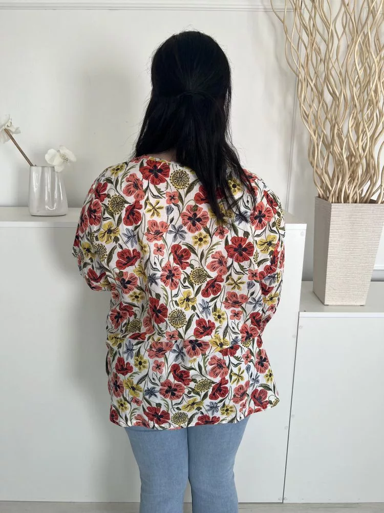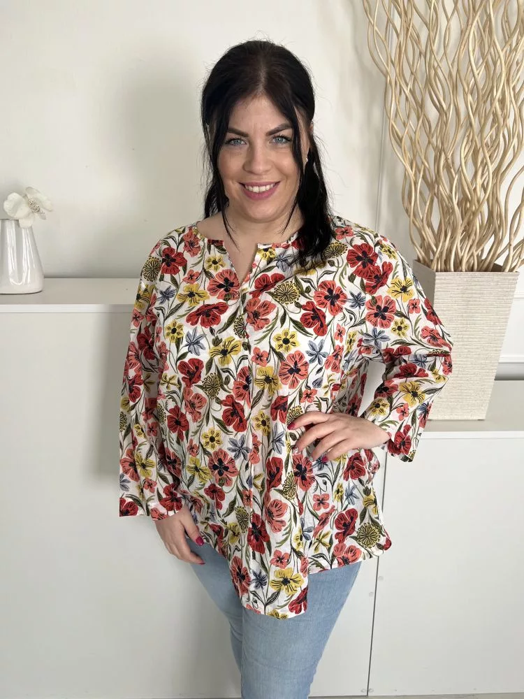 Seasalt Cronwall (XXL) Fehér Színes Virágos, 100% Pamut Mellnél Gombos, Elől Díszhajtásos Felső