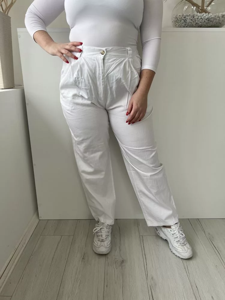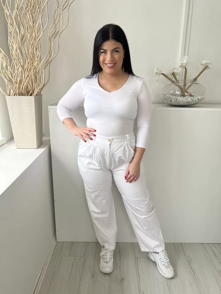 Sensations (L) Fehér Elől Gombos, Zsebes Övtartós, Hátul Gumisderekú Nadrág