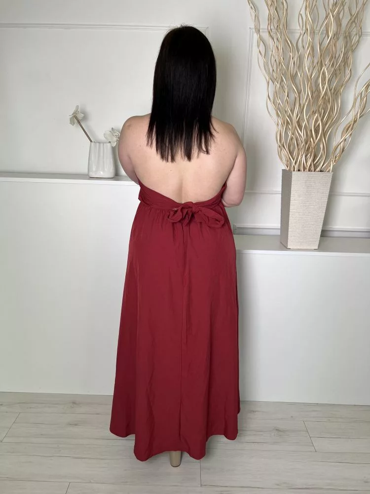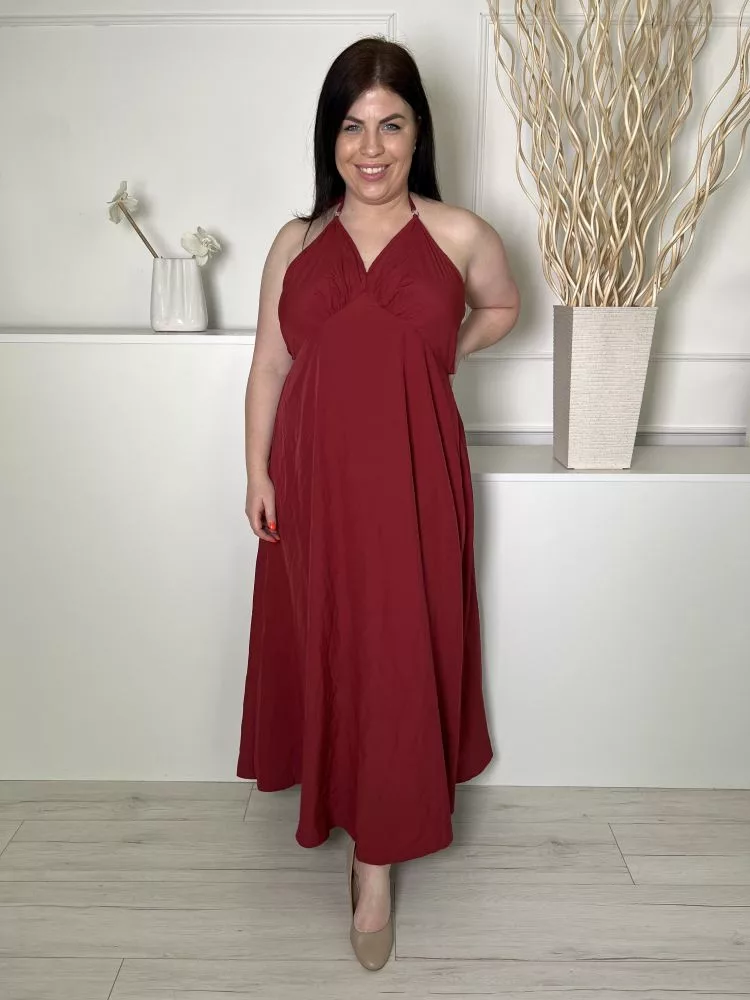 Shein (L) Bordó Hátul Megkötős, Nyakpántos Lenge Fazonú Ruha