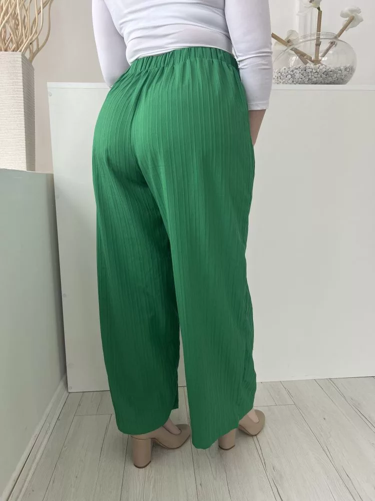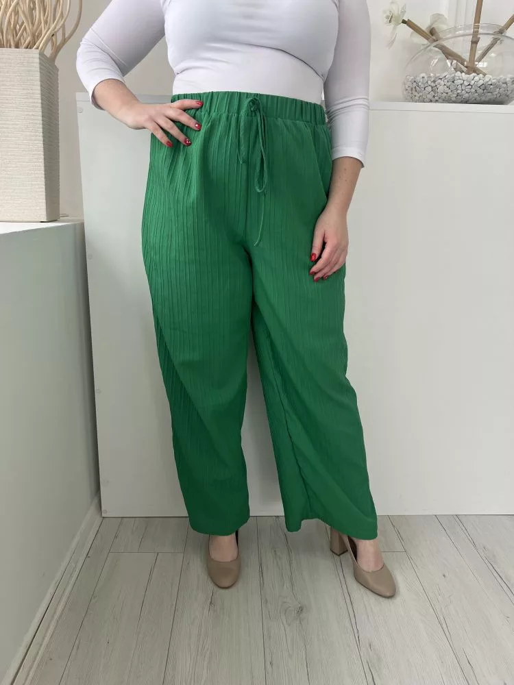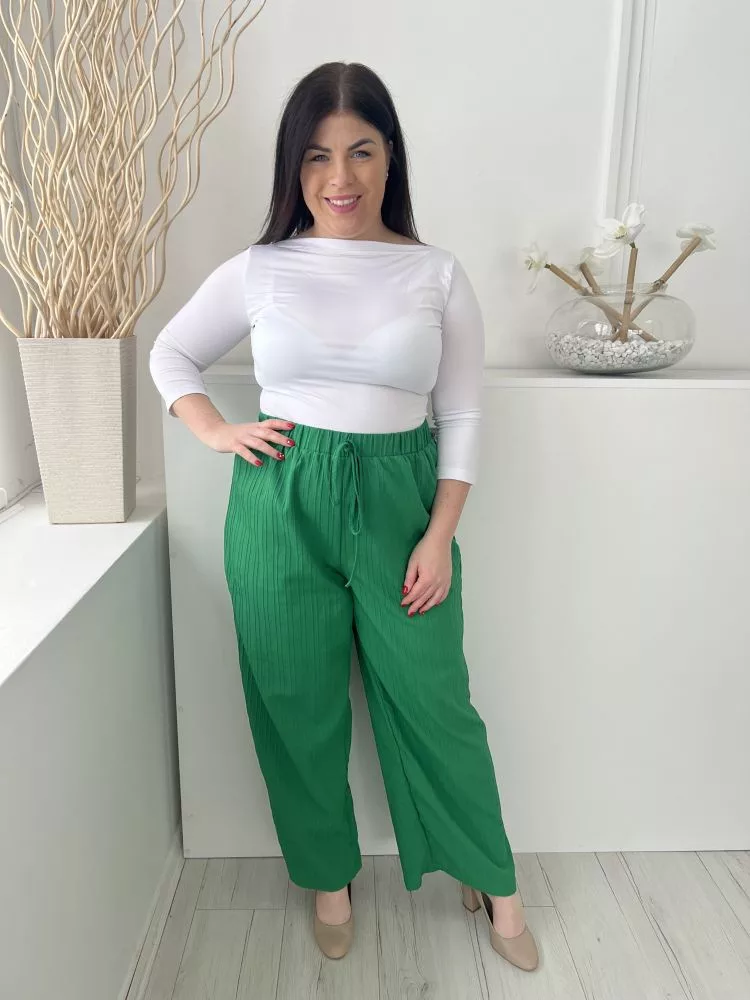 Shein (L) Fűzöld Anyagában Mintás, Gumisderekú Díszmegkötős, Bőszárú Nadrág
