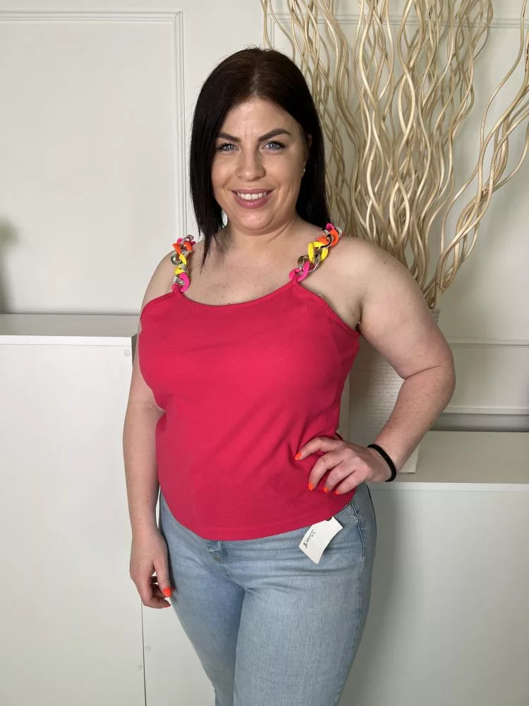 Shein (L) Pink Színes Lánc Pántos Rugalmas Anyagú Felső