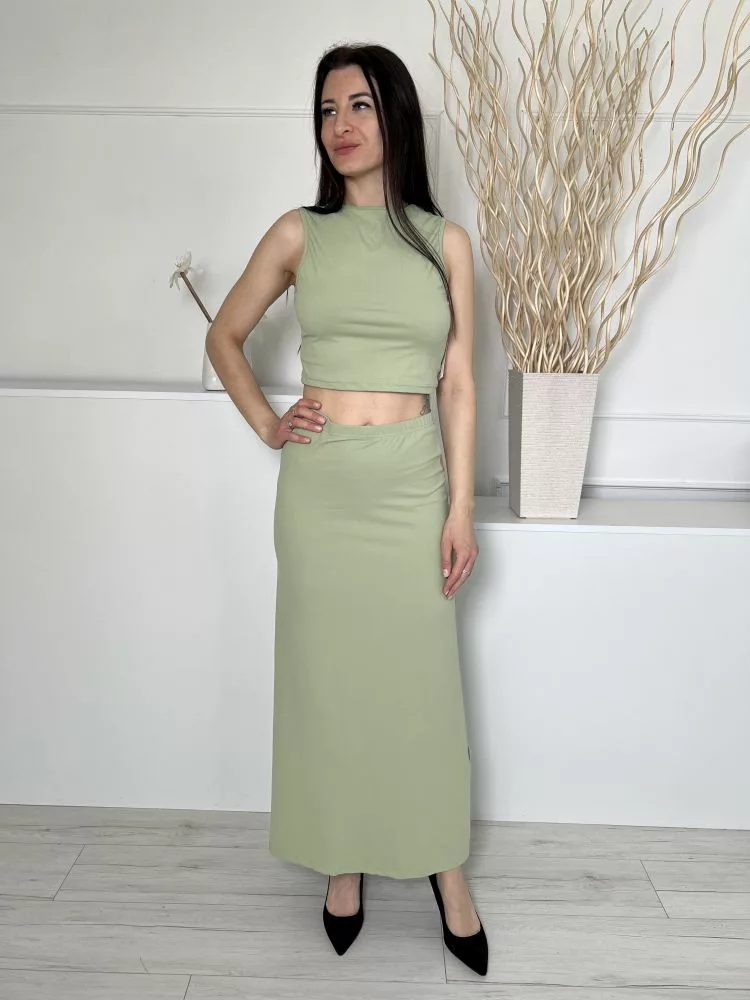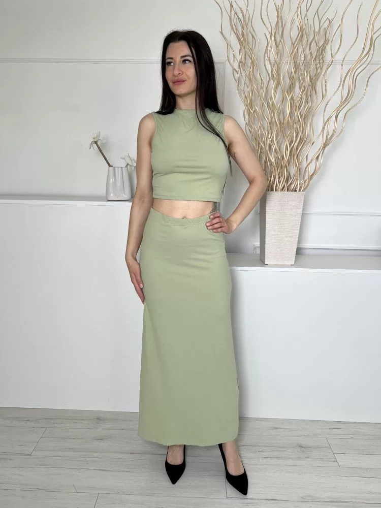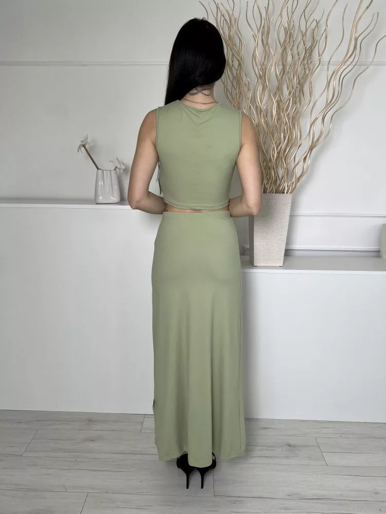 Shein (M) Alma Zöld Kerek Nyakú, Rövid Fazonú Rugalmas Anyagú Felső