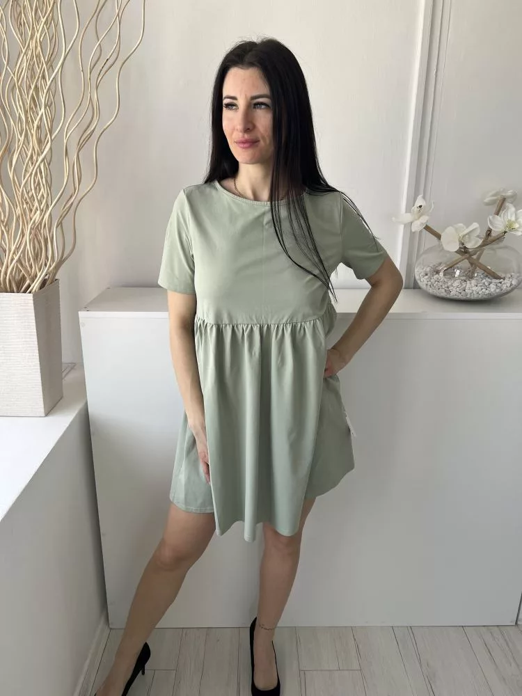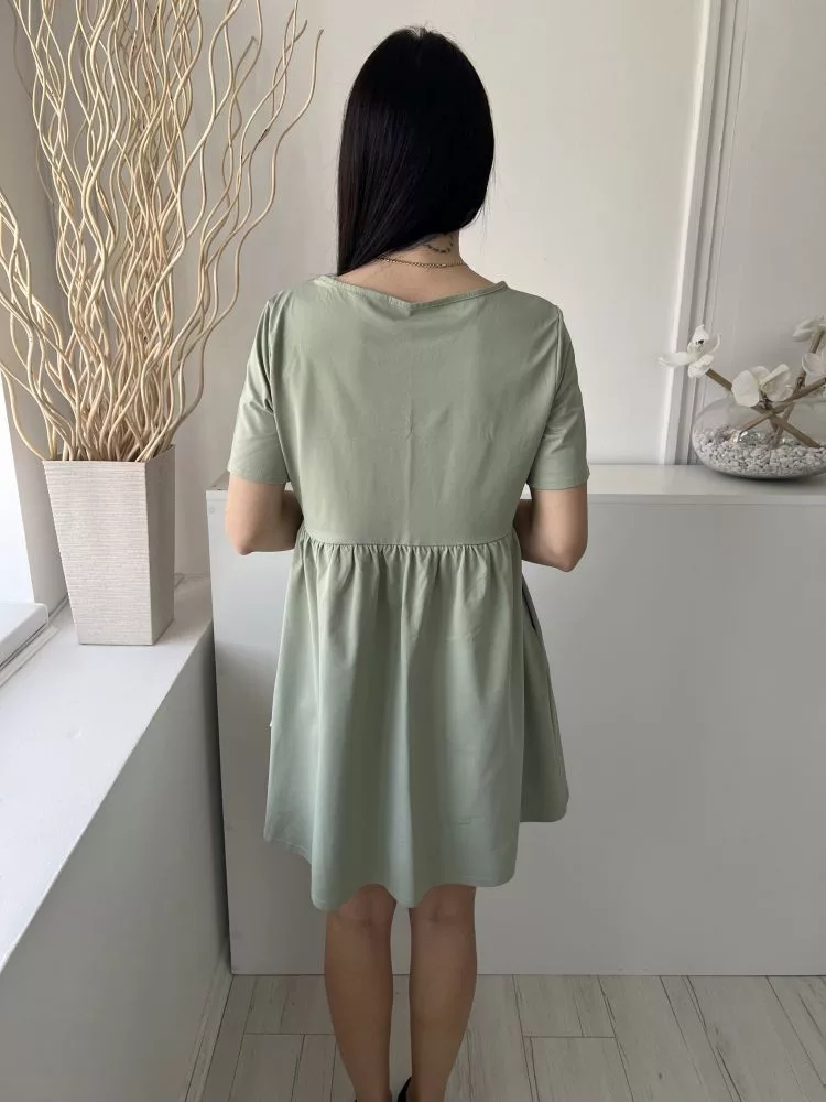 Shein (M) Almazöld Kerek Nyakú, Derékban Szabott Fodros Aljú Ruha