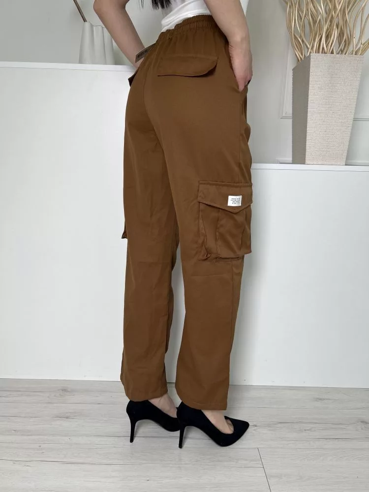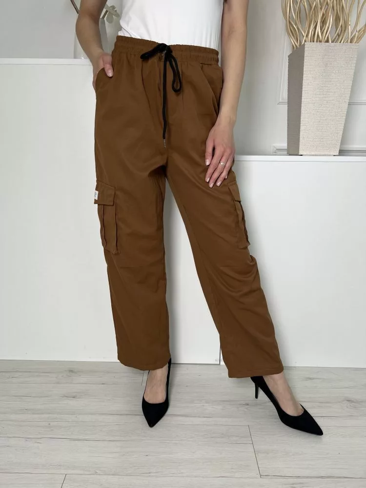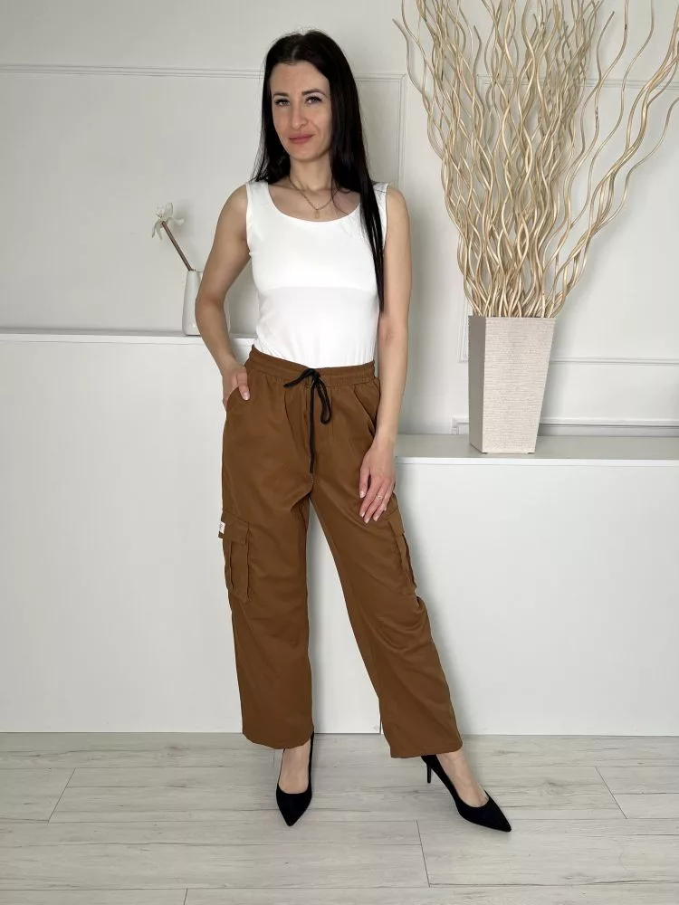 Shein (M) Barna Derékban Összehúzható, Megkötős Oldalt Zsebes, Bőszárú Nadrág