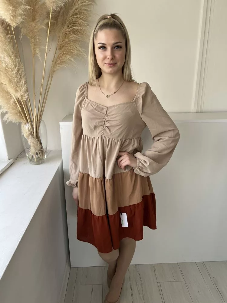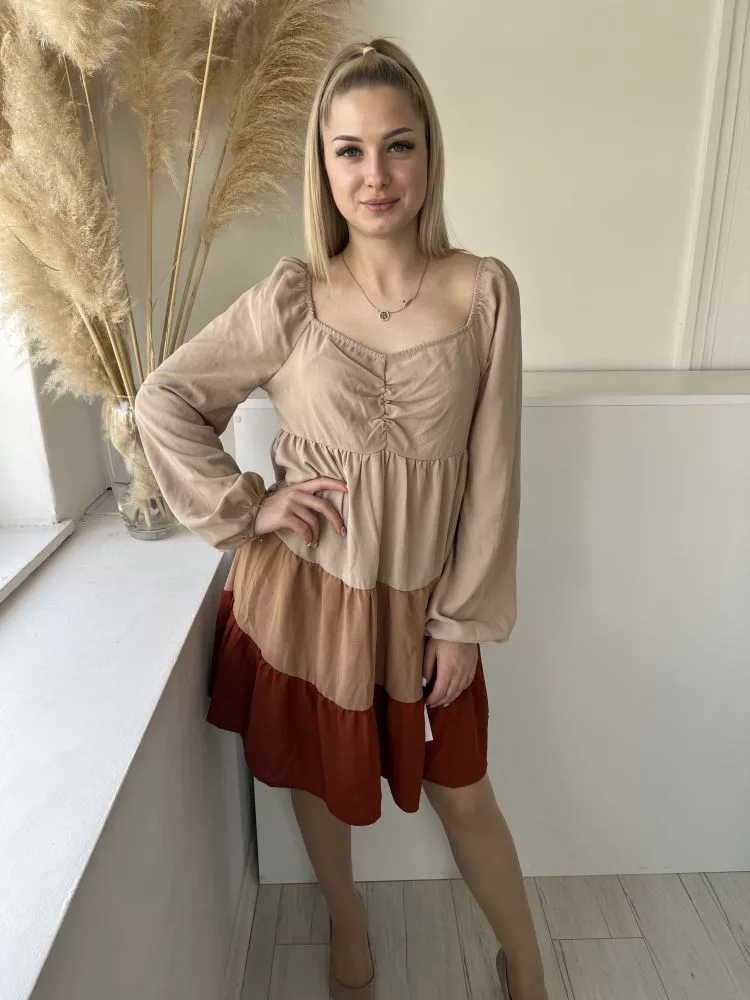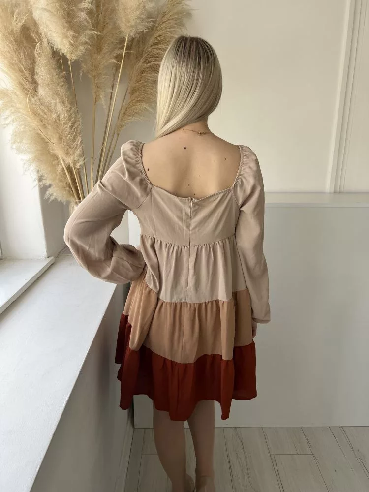 Shein (M) Barna Hátul Cipzáros, Mellnél Húzott Fodros Aljú, Gumírozott Vállú Ruha