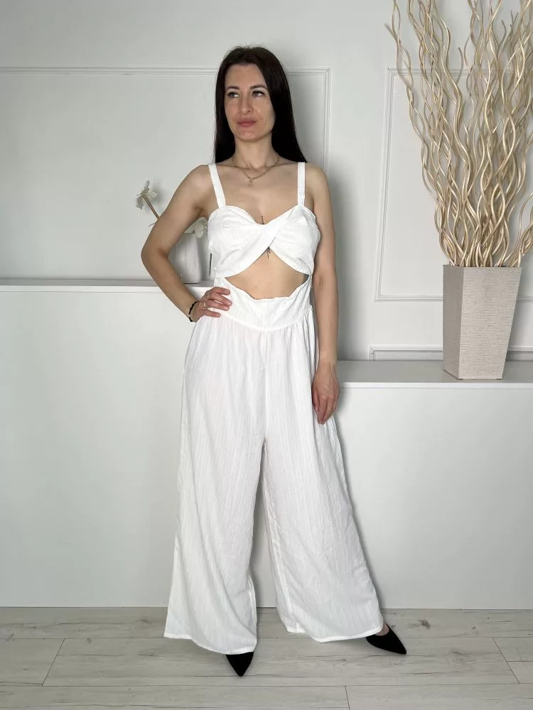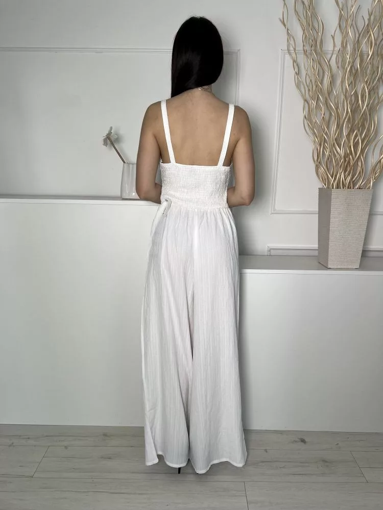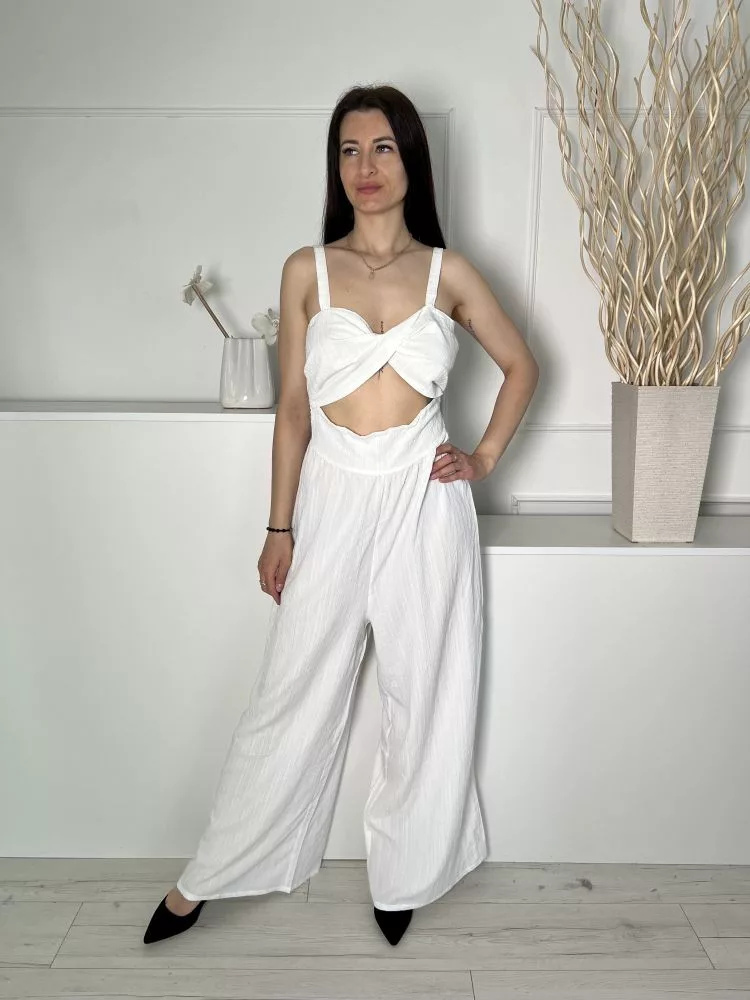 Shein (M) Fehér Hátul Darázsolt, Elől Nyitott Mellnél Csavart, Anyagában Mintás Overál