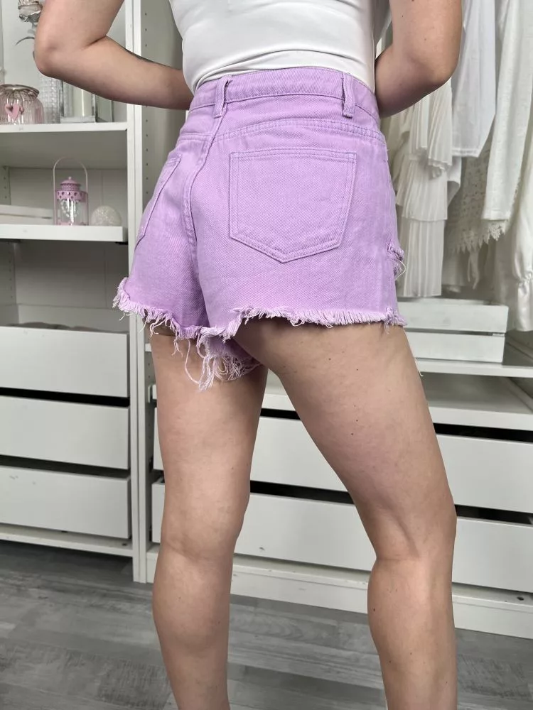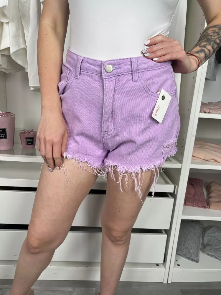 Shein (M) Lila Elől Gombos, Zsebes Rojtos Aljú,Farmer Rövidnadrág