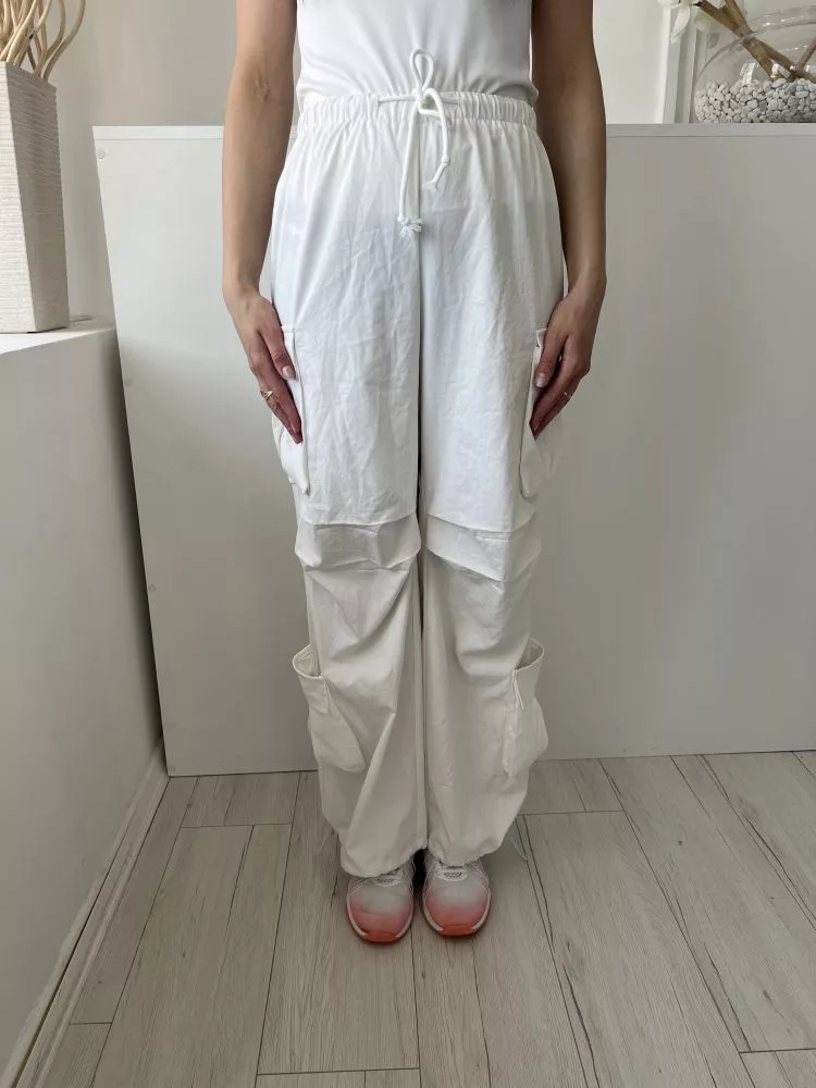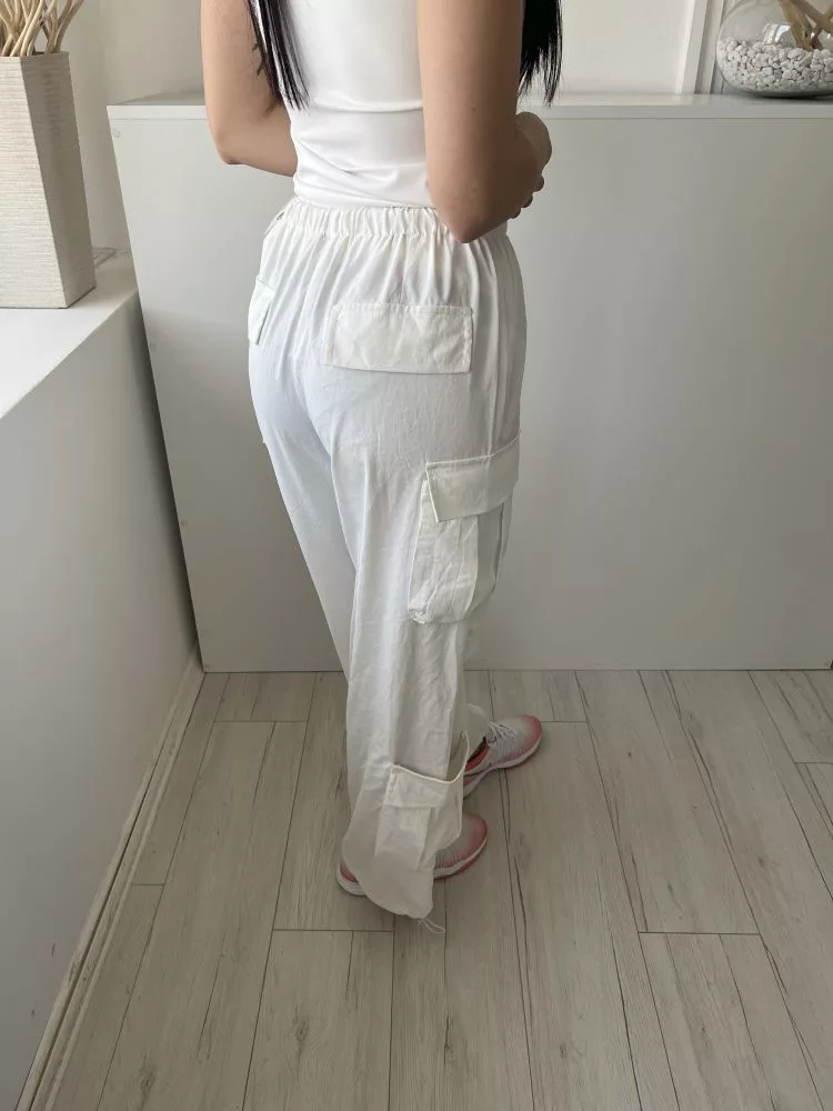 Shein (S) Fehér Derékban Összehúzható, Oldalt Zsebes Enyhén Áttetsző Nadrág