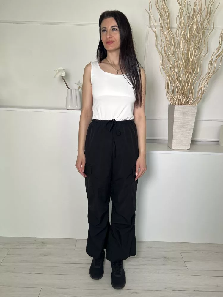 Shein (S) Fekete Derékban Összehúzható, Megkötős Oldalt Zsebes Nadrág