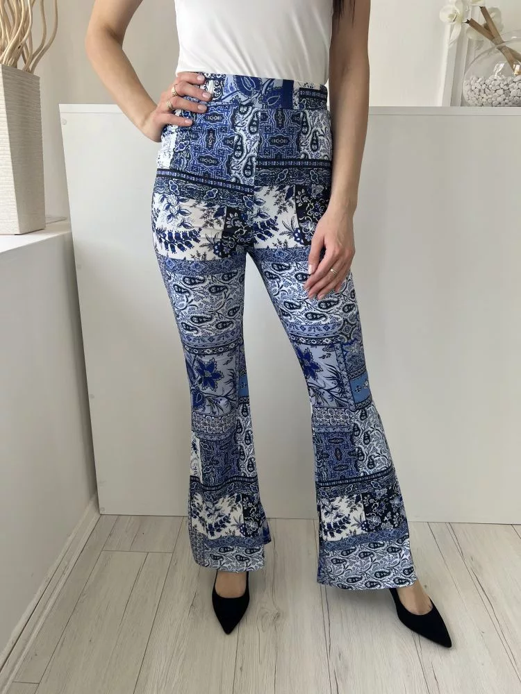 Shein (S) Kék-Fehér Mintás, Gumisderekú Trapéz Szárú Nadrág