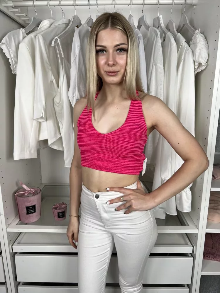 Shein (S) Rózsaszín Anyagában Mintás Hátul Nyakban Megkötős Felső