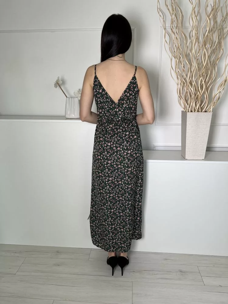 Shein (S) Sötétzöld Apró Virágos, Oldalt Sliccelt Gumisderekú, Pántos Ruha