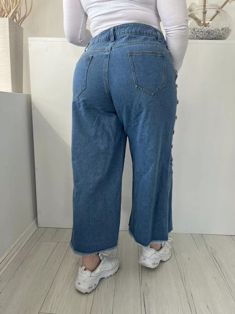 Shein (XL) Kék Elől Gombos, Zsebes Oldalt Díszgombos, Sliccelt, Farmer Nadrág