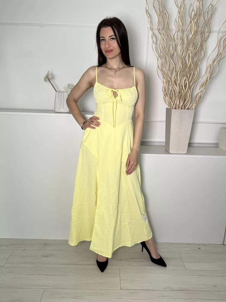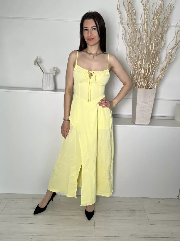 Shein (XS) Sárga Mellnél Megkötős, Szoknyarészben Átlapolt Hátul Darázsolt, Állítható Pántú Ruha