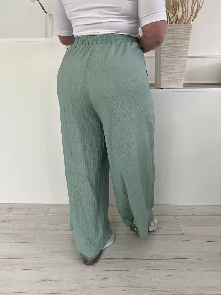 Shein (XXL) Selyemcukor Zöld Anyagában Mintás, Gumisderekú Díszmegkötős, Zsebes, Bőszárú Nadrág
