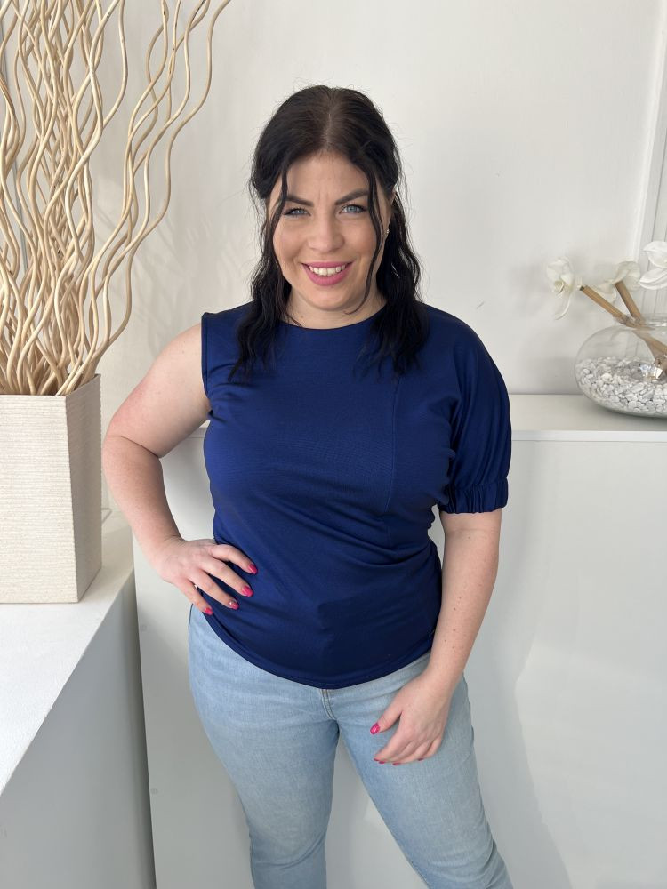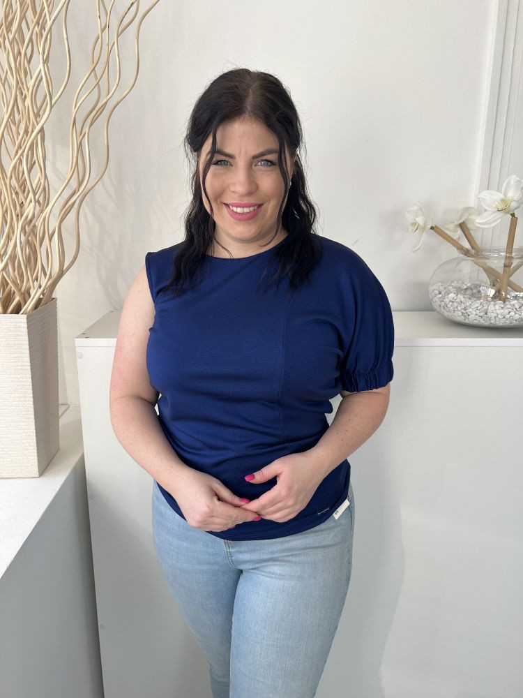 Simple (M) Indigókék Félvállas, Kerek Nyakú Gumis Ujjvégű, Rugalmas Anyagú Felső