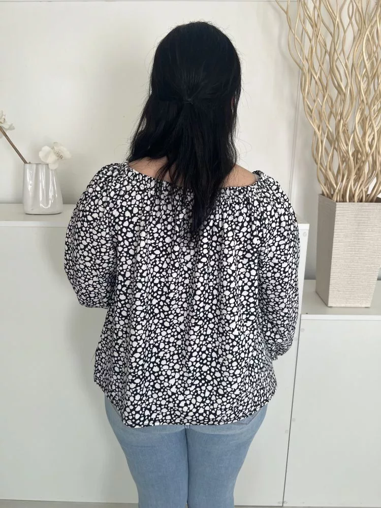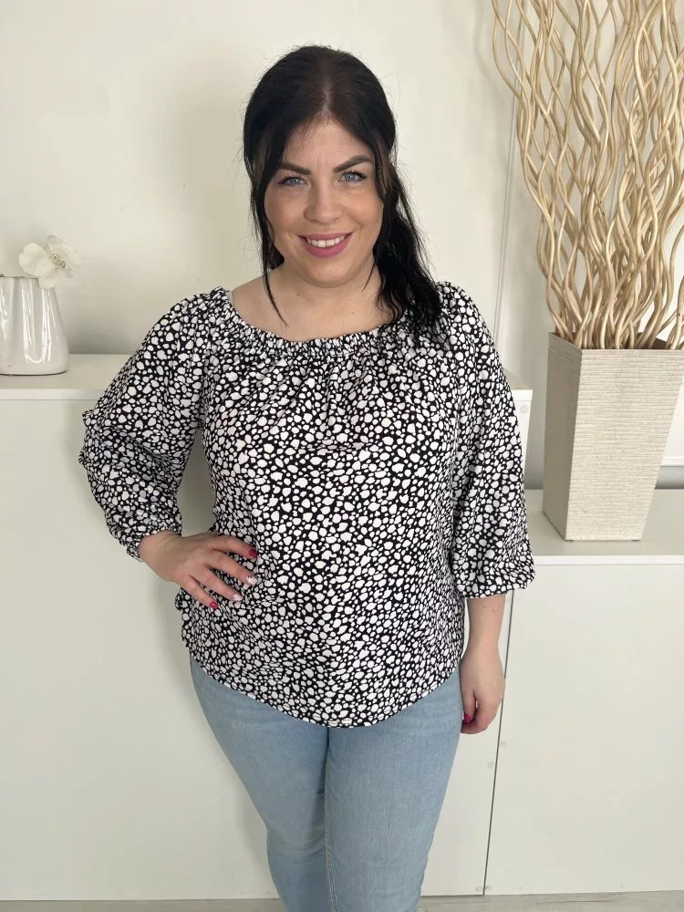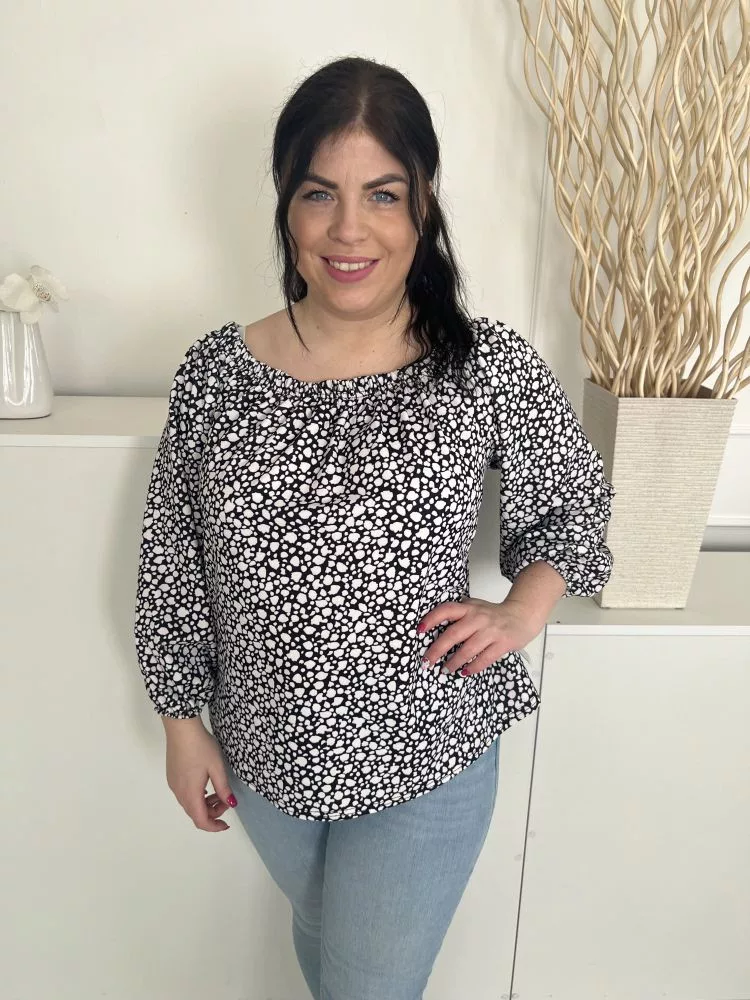 Simply Be (L) Fekete Fehér Foltmintás, Gumírozott Vállú Gumis Ujjvégű Felső