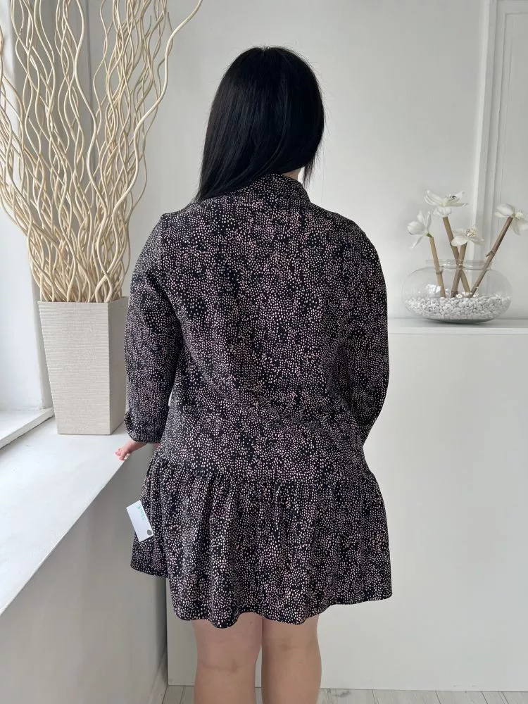 Soon (M) Fekete Mályva Apró Foltmintás, Fodros Aljú Elől Végig Gombos, Galléros Ruha