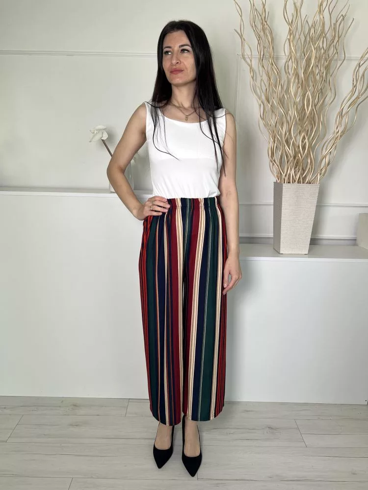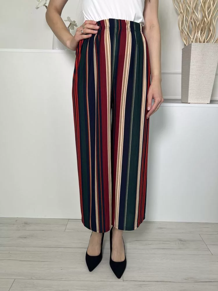 Stella (M) Sötétkék-Drapp-Piros Gumisderkú, Csíkos Lenge Fazonú Nadrág