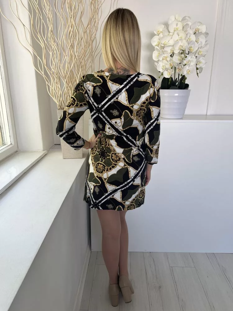 Stradivarius (M) Fehér Zöld Kereknyakú Rugalmas Anyagú Ruha