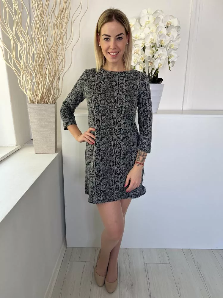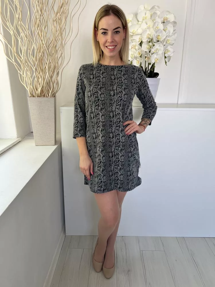 Stradivarius (M) Szürke Jersey Anyagú Kígyóbőrmintás Ruha