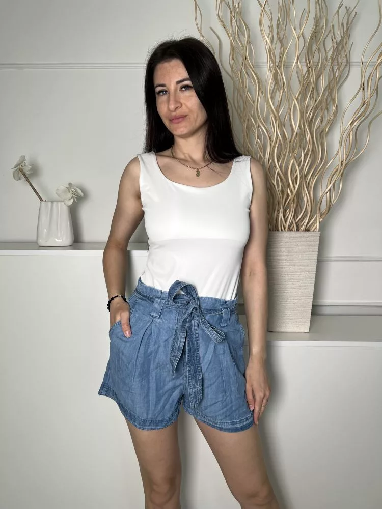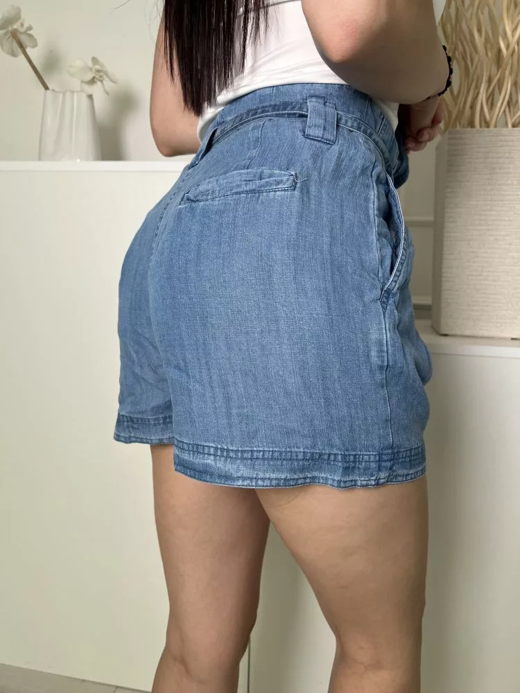 SuperDry (S) Kék Elől Gombos, Derékban Megkötős Zsebes, Vékony Anyagú, Farmer Rövidnadrág