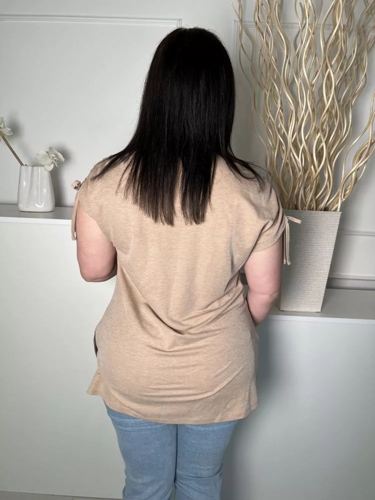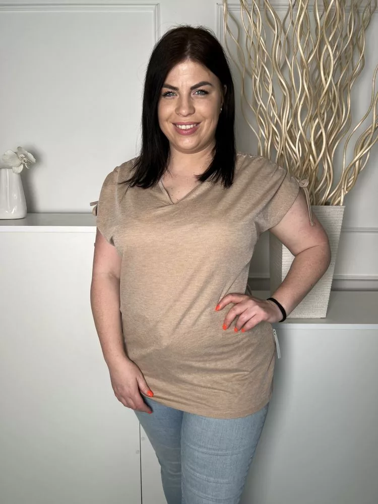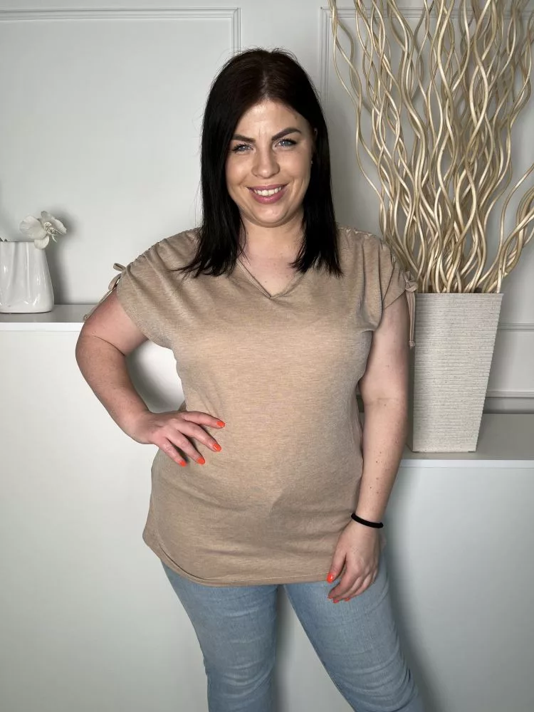TU (L) Barna Ujján Húzott, Megkötős V Kivágású, Rugalmas Anyagú Felső