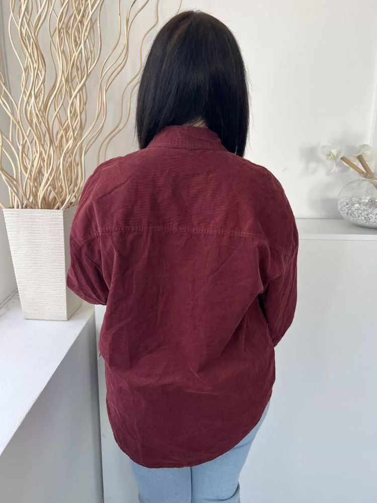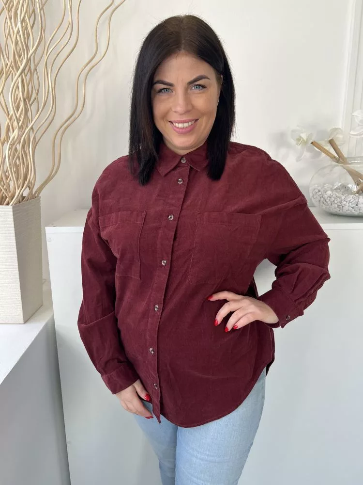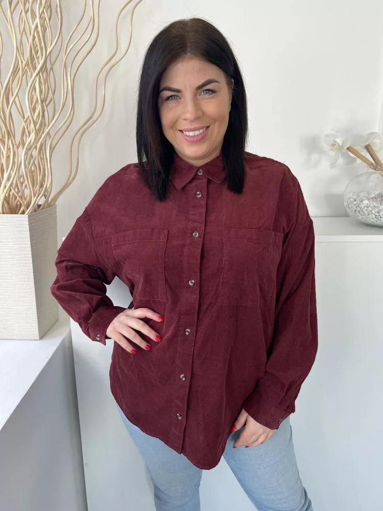 TU (L) Bordó Elől Végig Gombos, Mellnél Zsebes Galléros, Kordbársony Felső