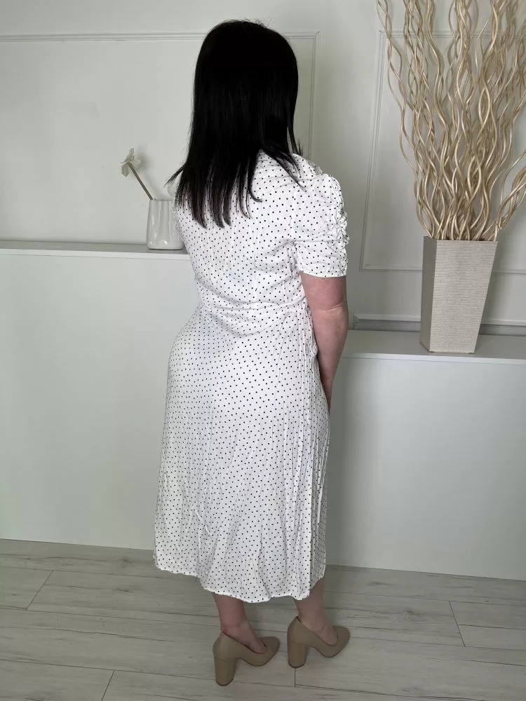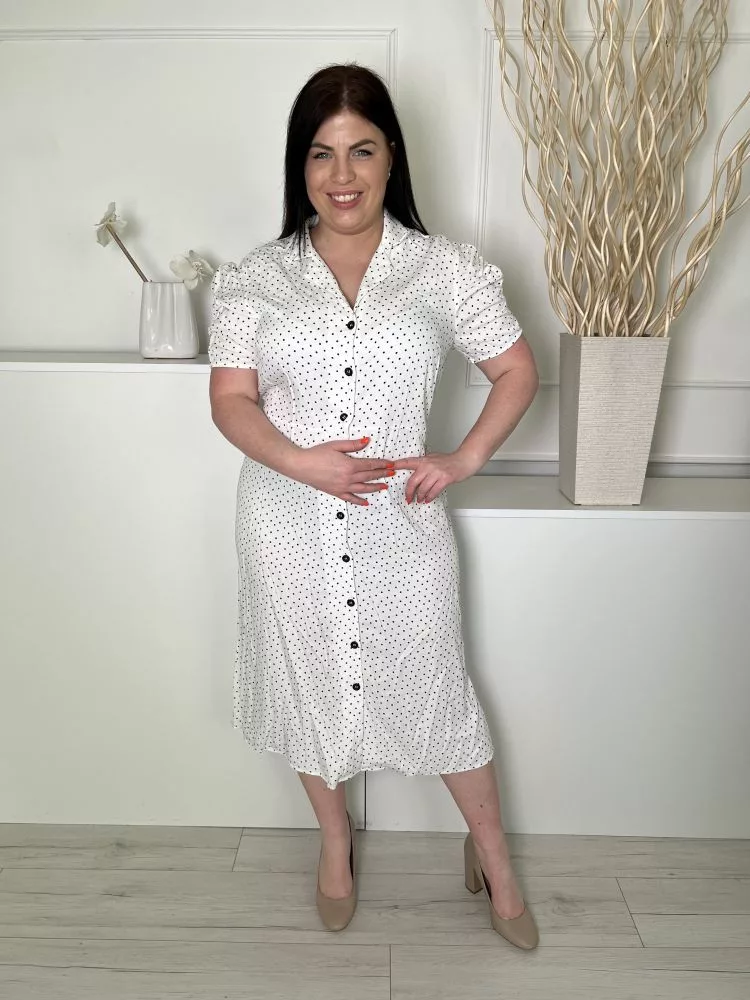 TU (L) Fehér Fekete Pöttyös, Elől Végig Gombos Buggyos Vállú Ruha