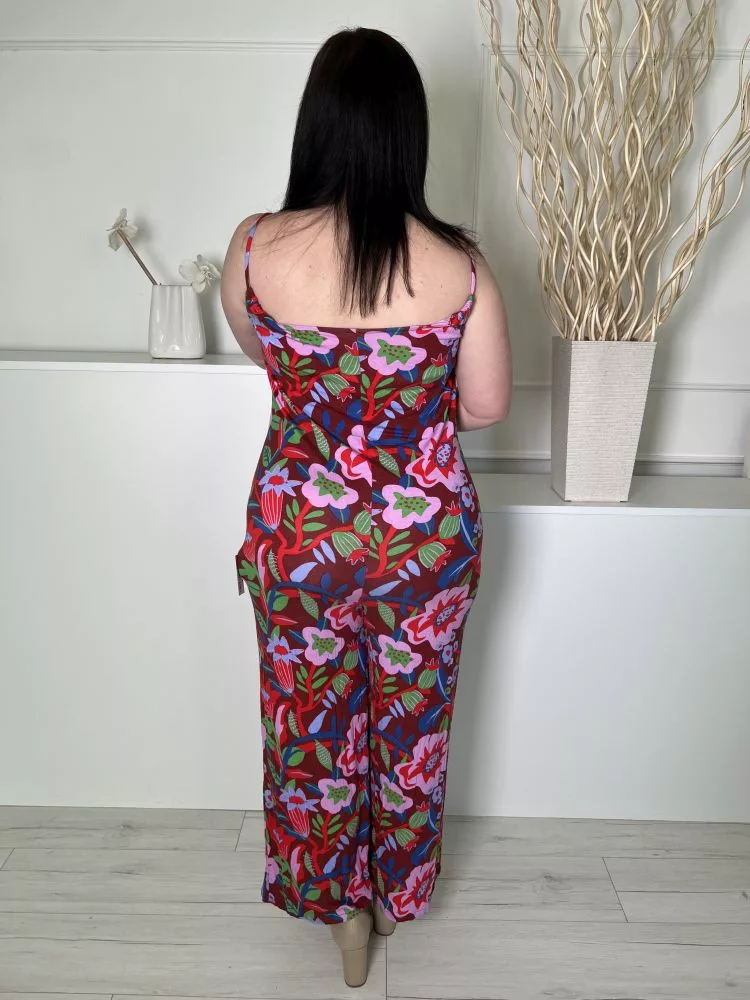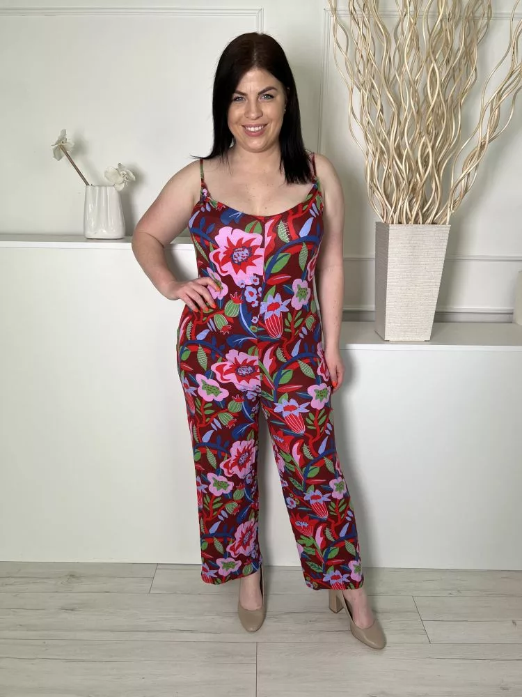 TU (L) Rőtbarna Színes Mintás, Pántos Rugalmas Anyagú Overál