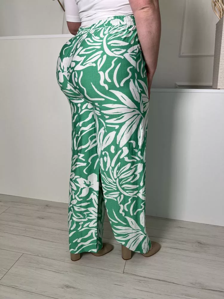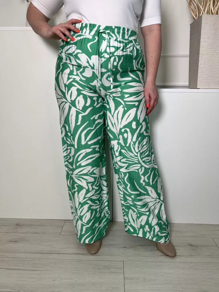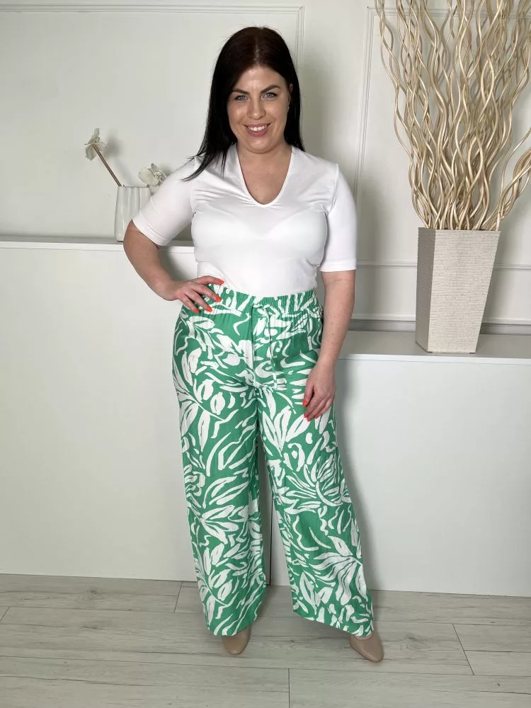 TU (L) Zöld Fehér Mintás, Derékban Összehúzható Megkötős, Bőszárú Nadrág
