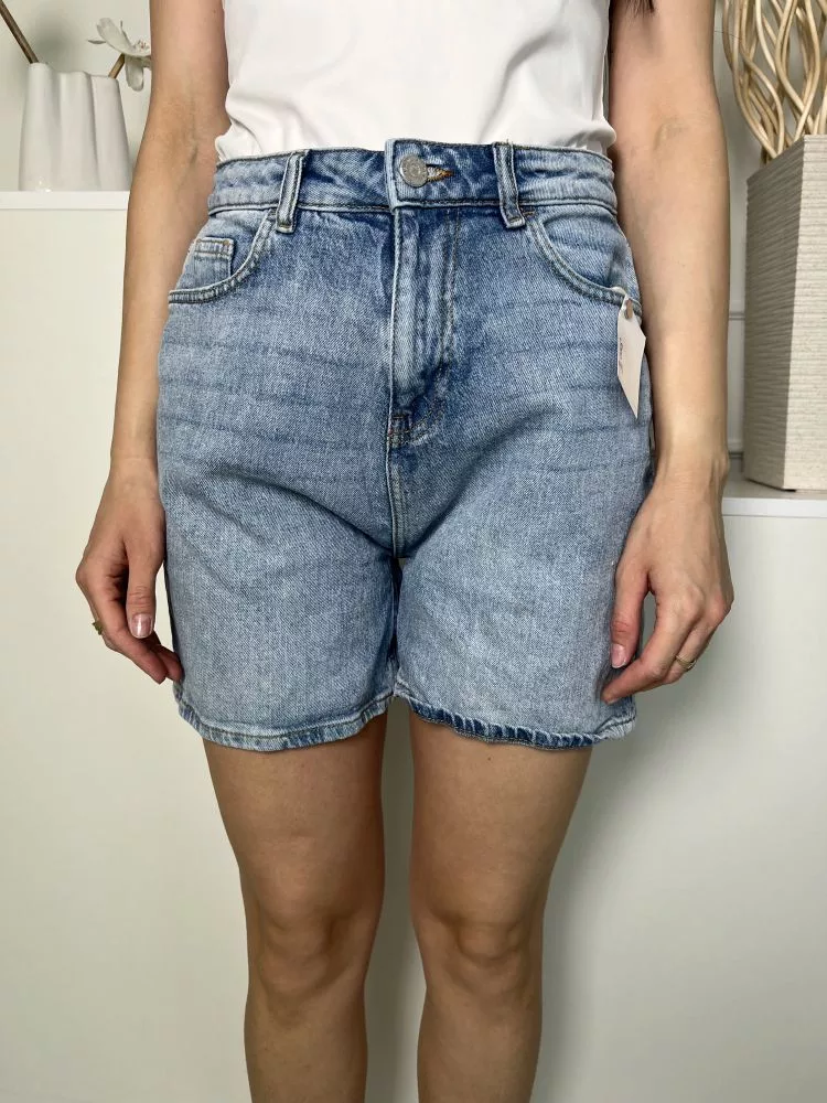 TU (S) Kék Elől Gombos, Zsebes Koptatott, Farmer Rövidnadrág