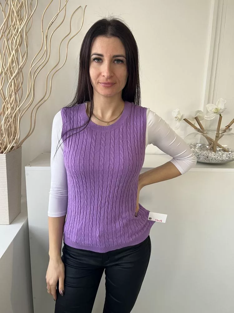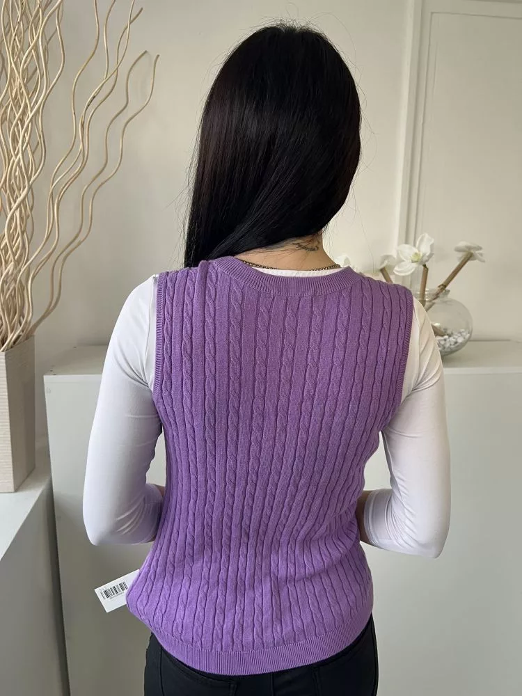 TU (S) Lila Anyagában Mintás, Kerek Nyakú Ujjatlan, Kötött Felső