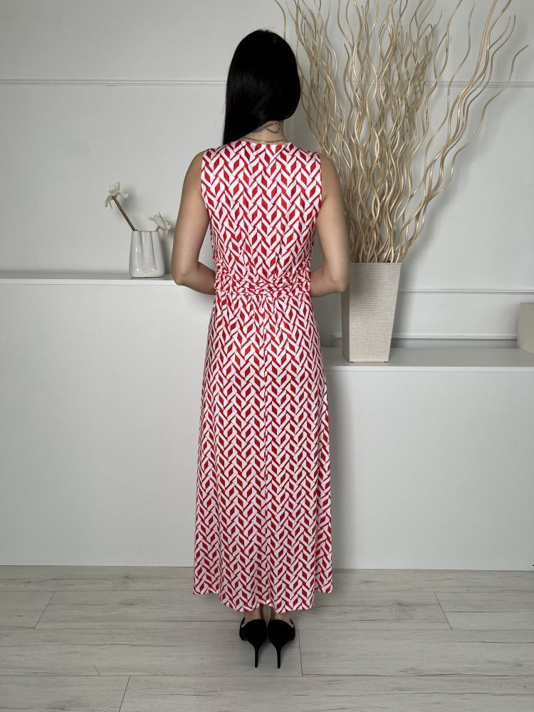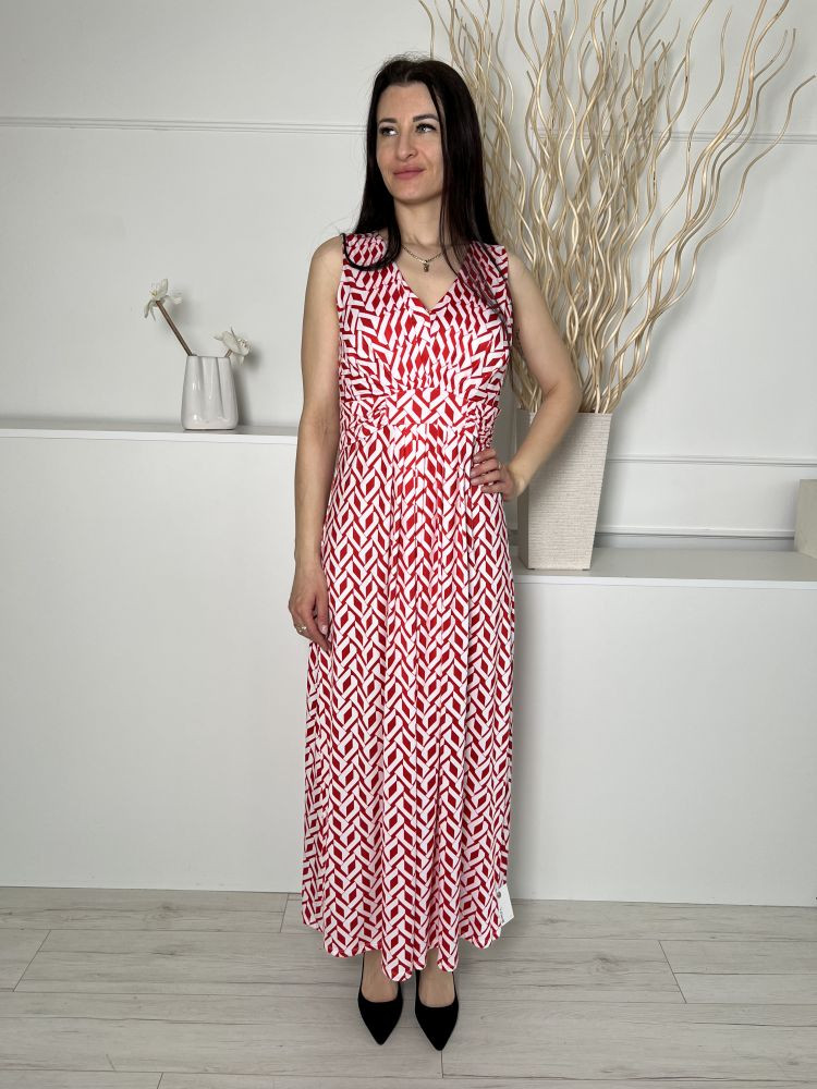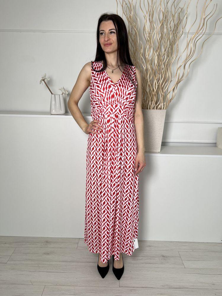 Together (S) Piros Fehér Mintás, Mellnél Díszhajtásos Deréban Díszöves, Rugalmas Anyagú Ruha