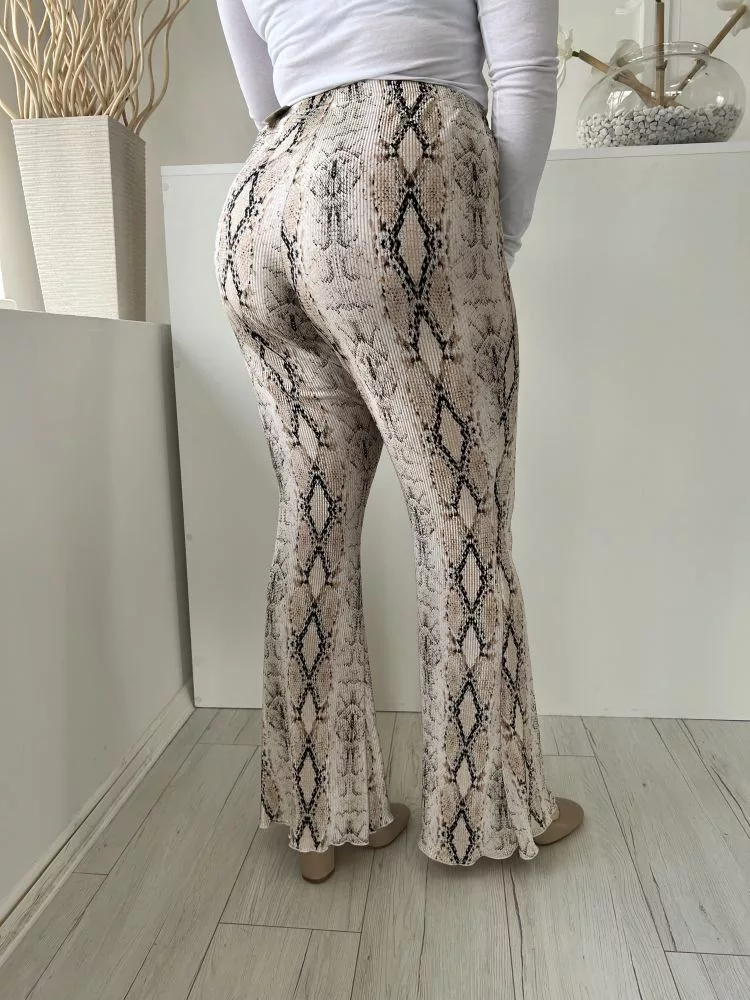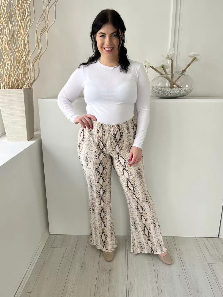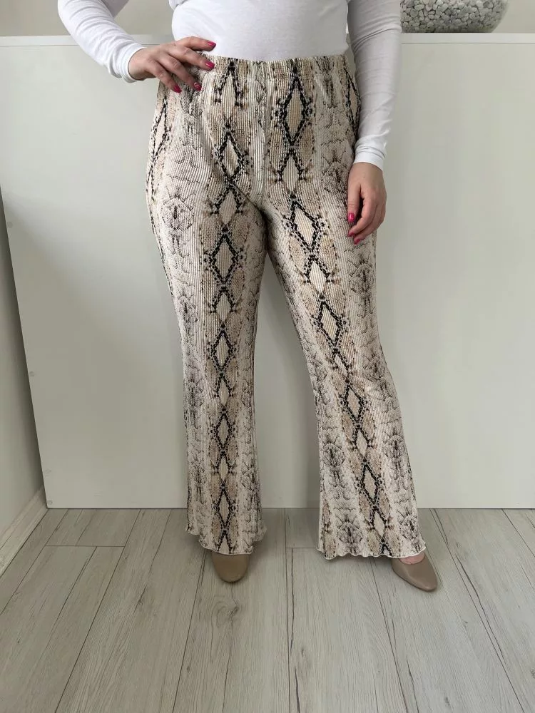 TopShop (M) Drapp FeketeKígyóbőrmintás Gumisderekú, Pliszírozott Nadrág