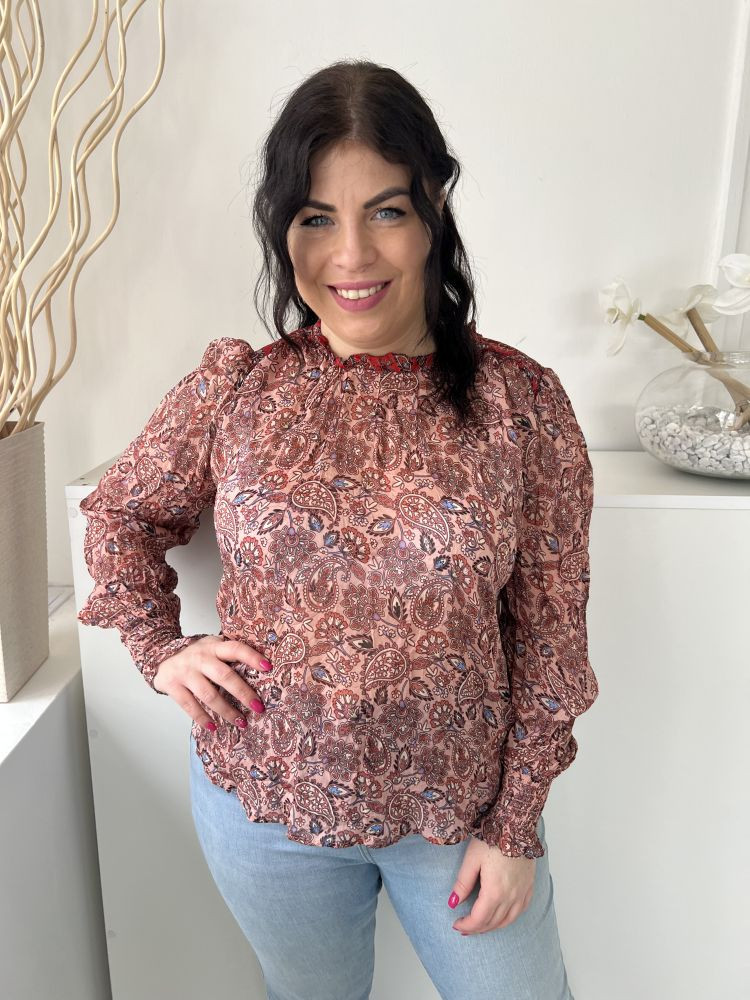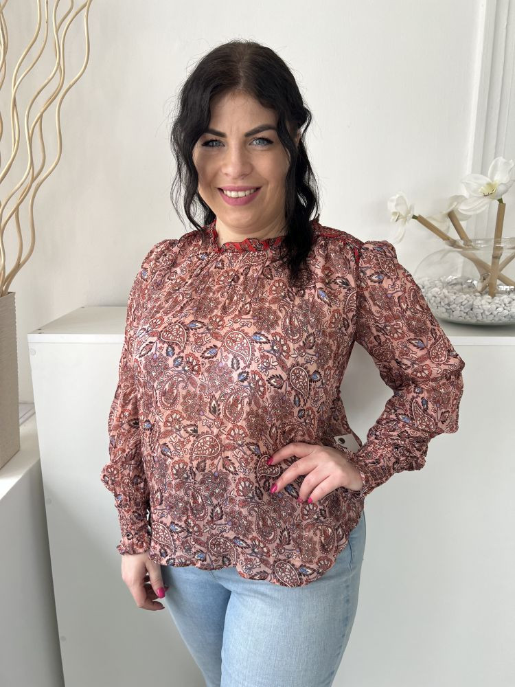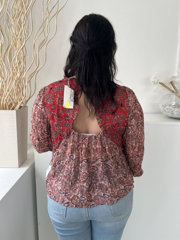 ÚJ Boden (M) Mályva Színes Mintás, Hátul Nyakban Gombos Hátul Nyitott Felső