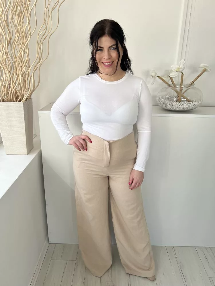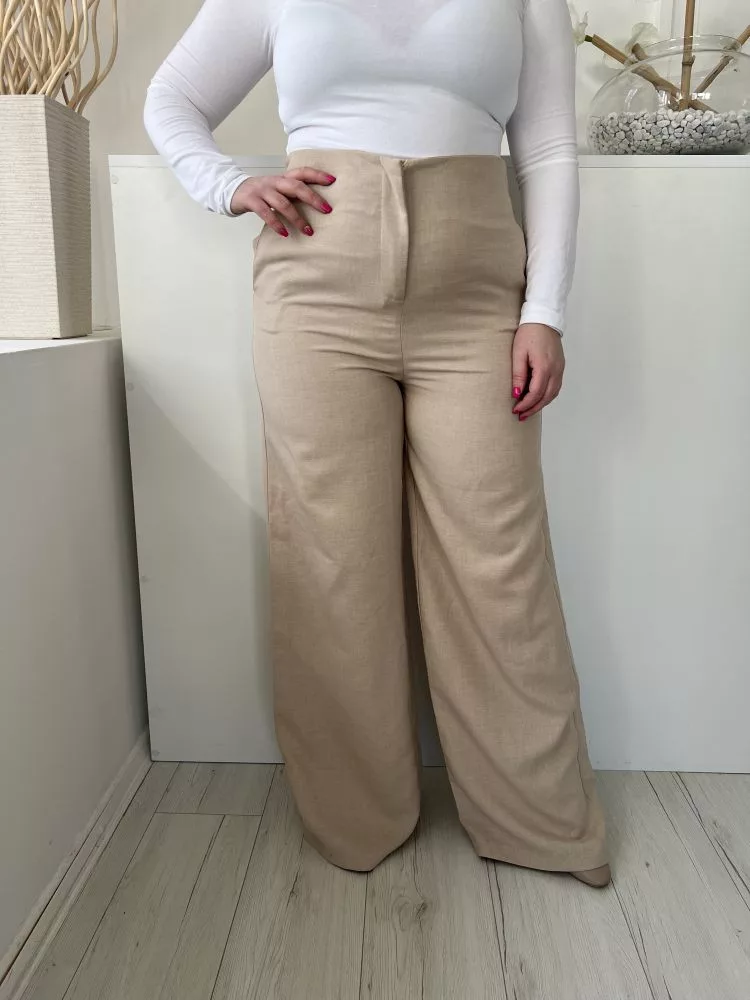 ÚJ Boohoo (L) Homokszínű Elől Cipzáros, Zsebes Magasított Derekú, Bőszárú Nadrág