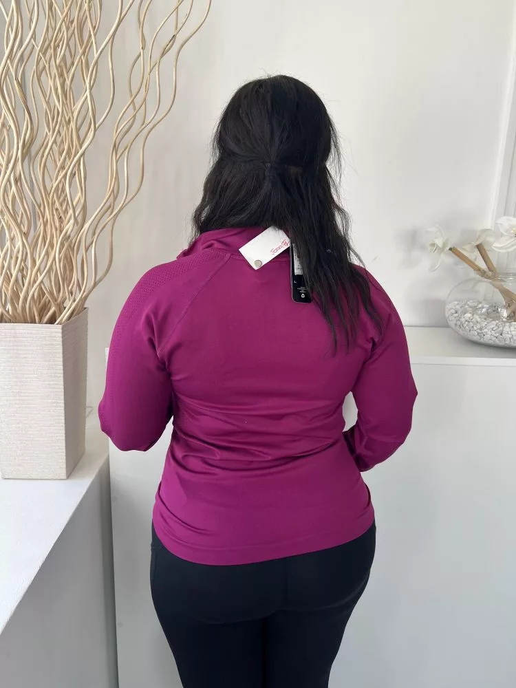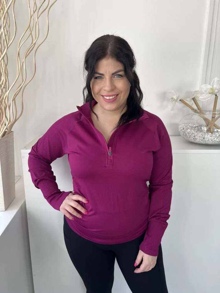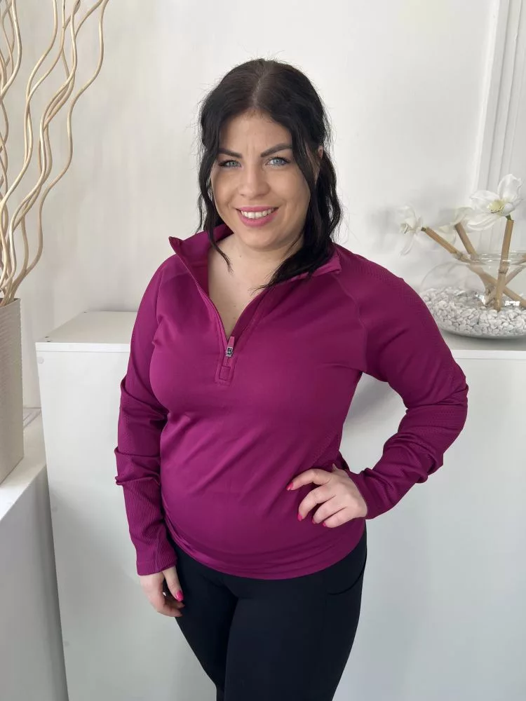 ÚJ Dunnes (L) Lila Mellnél Cipzáros Anyagában Mintás Felső