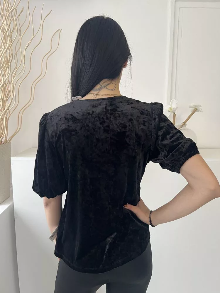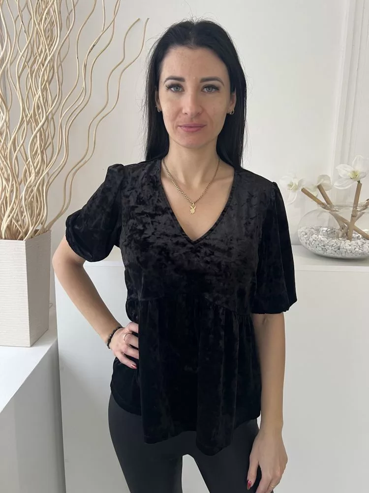 ÚJ Dunnes (S) Fekete Derékban Szabott, Buggyos Ujjú V Kivágású, Tükörbársony Felső