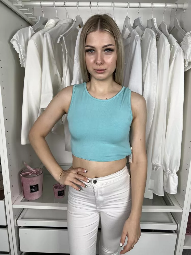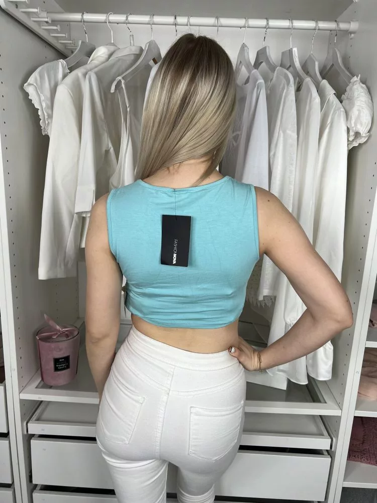 ÚJ Fashion Nova (S) Vízkék Kerek Nyakú Rövid Derekú Felső