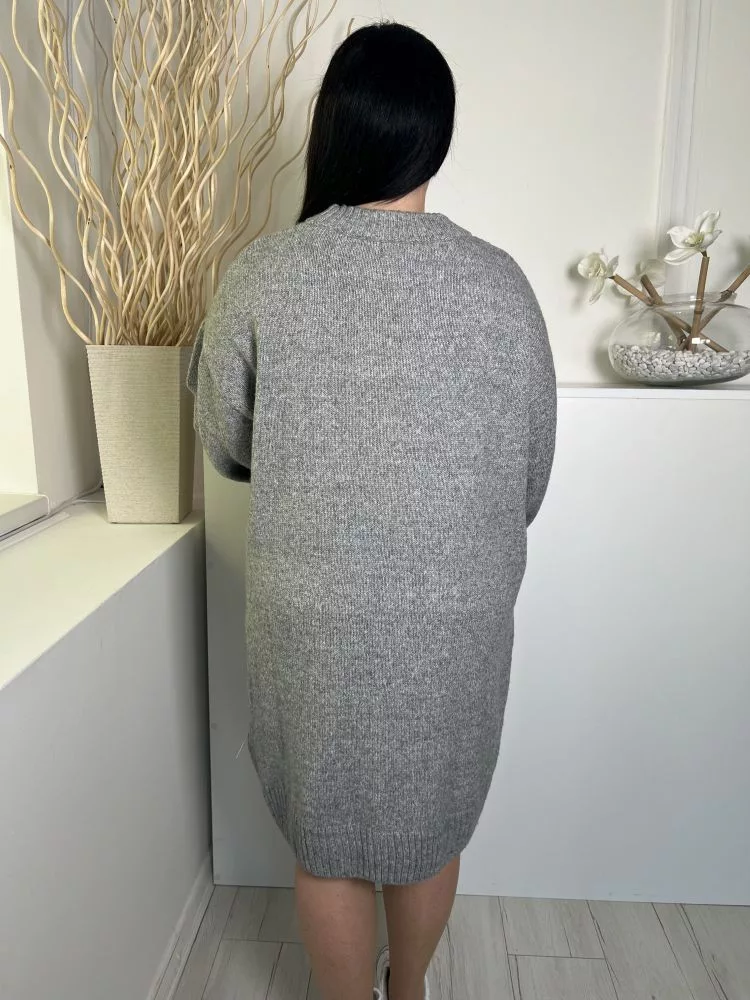 ÚJ H&M (M) Szürke Kerek Nyakú, Bőfazonú Kötött Ruha