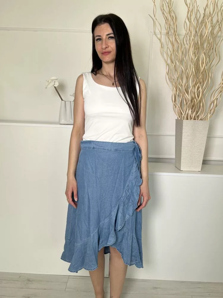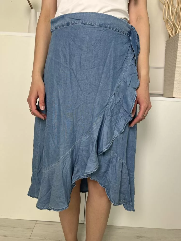 ÚJ H&M (S) Kék Átlapolt, Oldalt Megkötős Fodros Szegélyű Szoknya