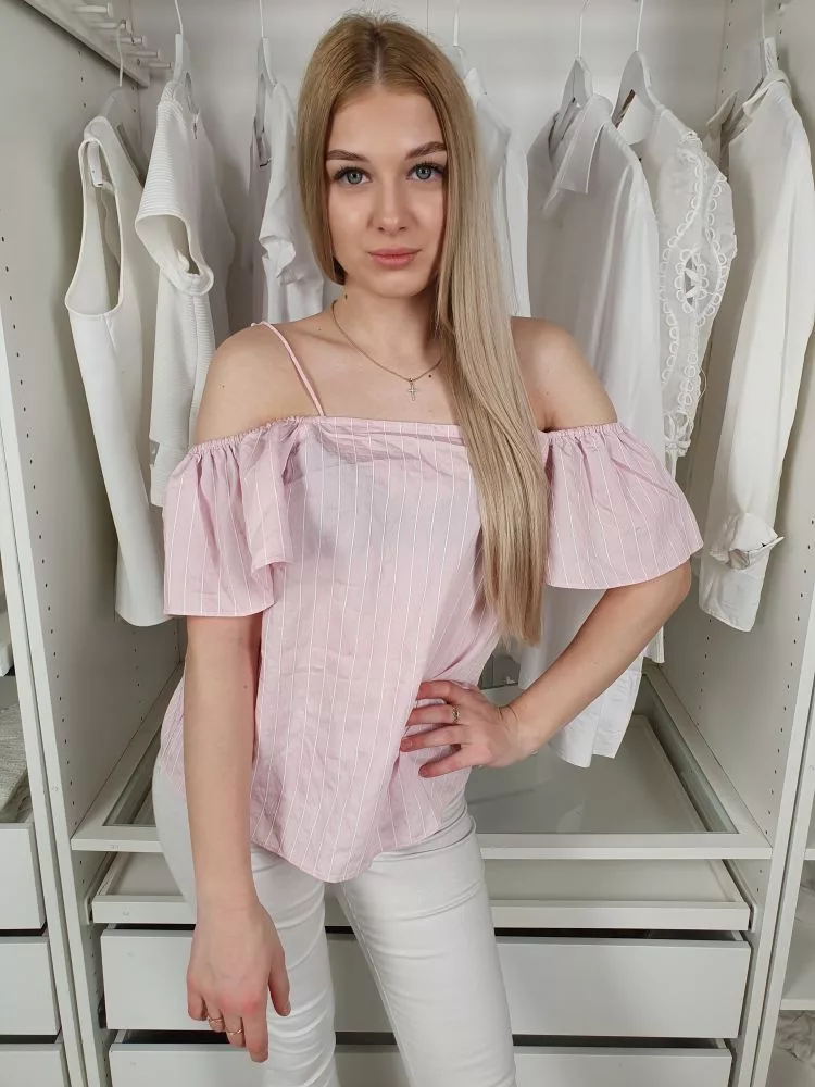 ÚJ H&M (S) Rózsaszín-Fehér Csíkos, Ejtett Vállú Pántos Felső
