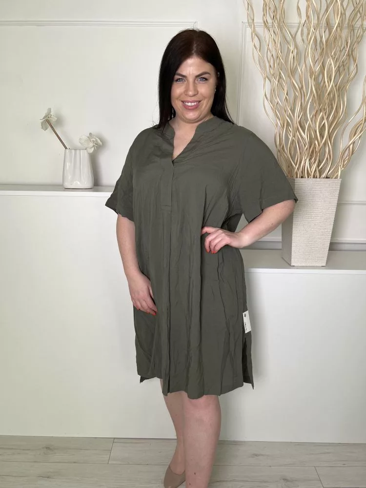 ÚJ H&M (XL) Khaki Mellnél Díszhajtásos Bőfazonú, Oldalt Sliccelt Ruha