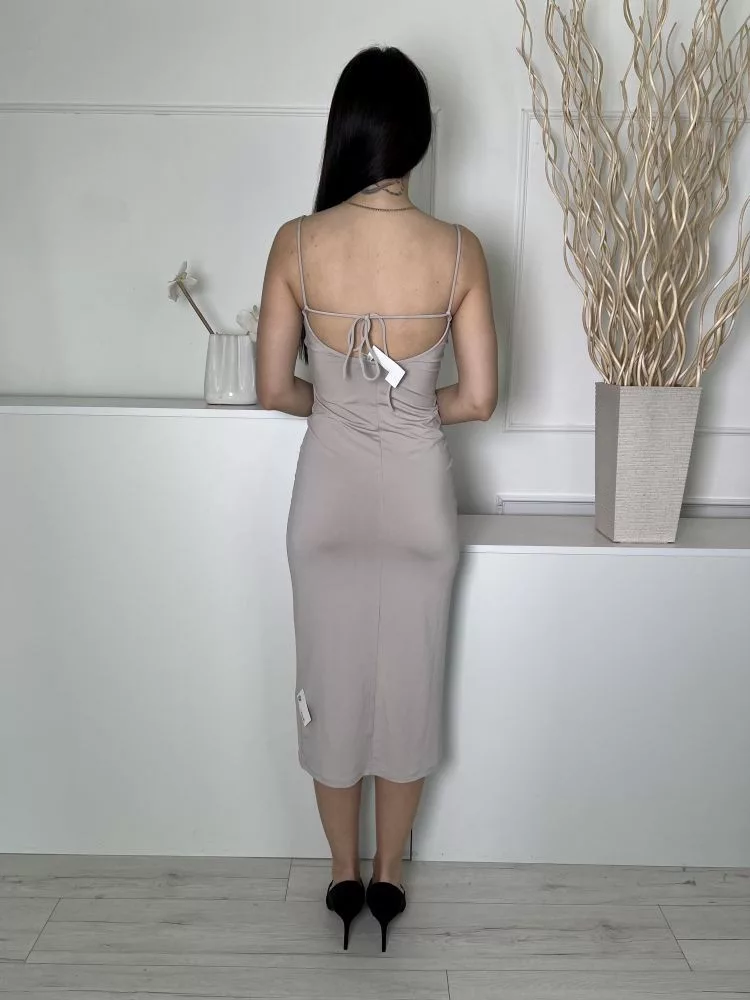 ÚJ H&M (XS) Galambszürke Hátul Megkötős, Rugalamas Anyagú Ruha