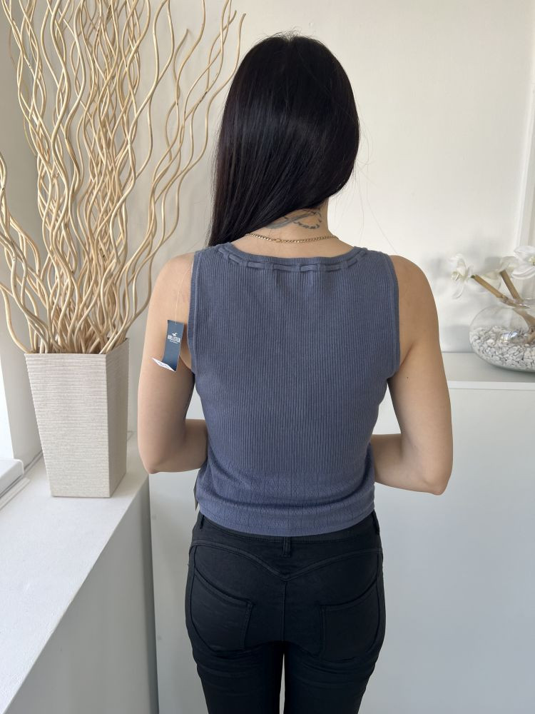 ÚJ Hollister (M) Szürkéskék Anyagában Bordázott Nyakban Díszfűzős Felső